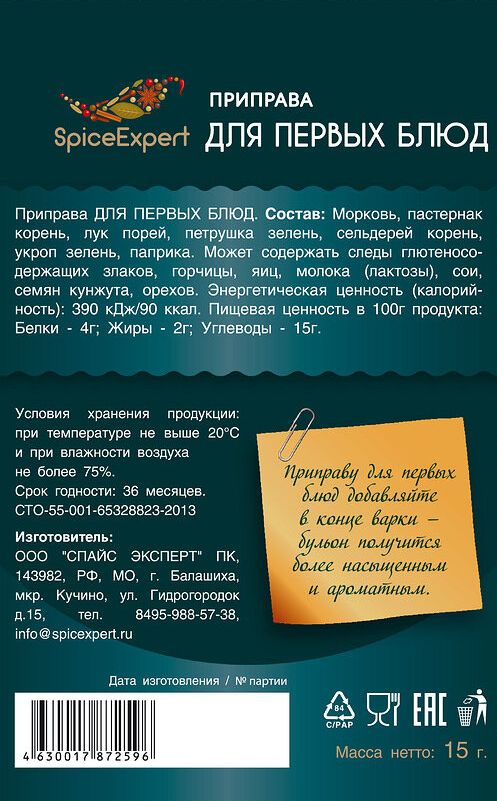 Назначение приправы Для супов