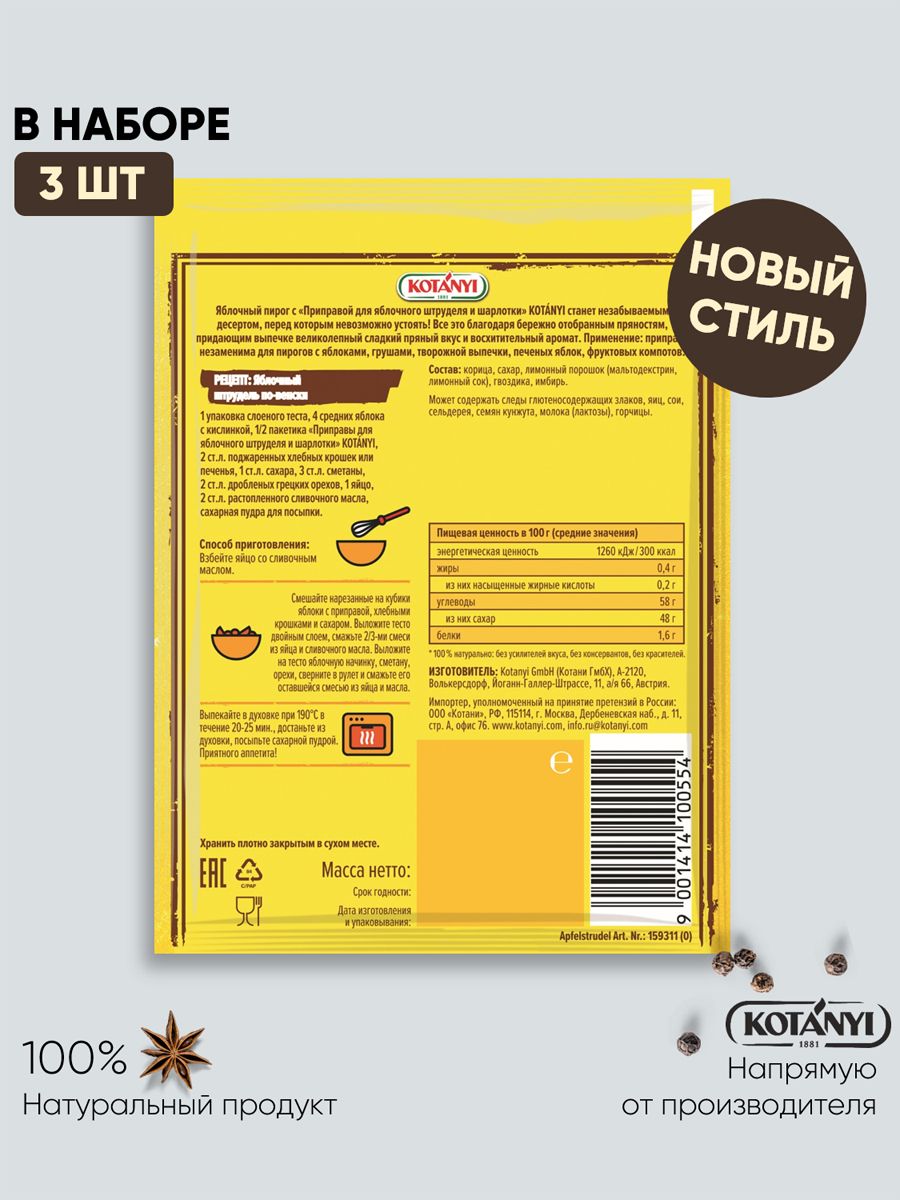 Приправа для яблочного пирога (шарлотки) KOTANYI, пакет 26г - 3 пакетика