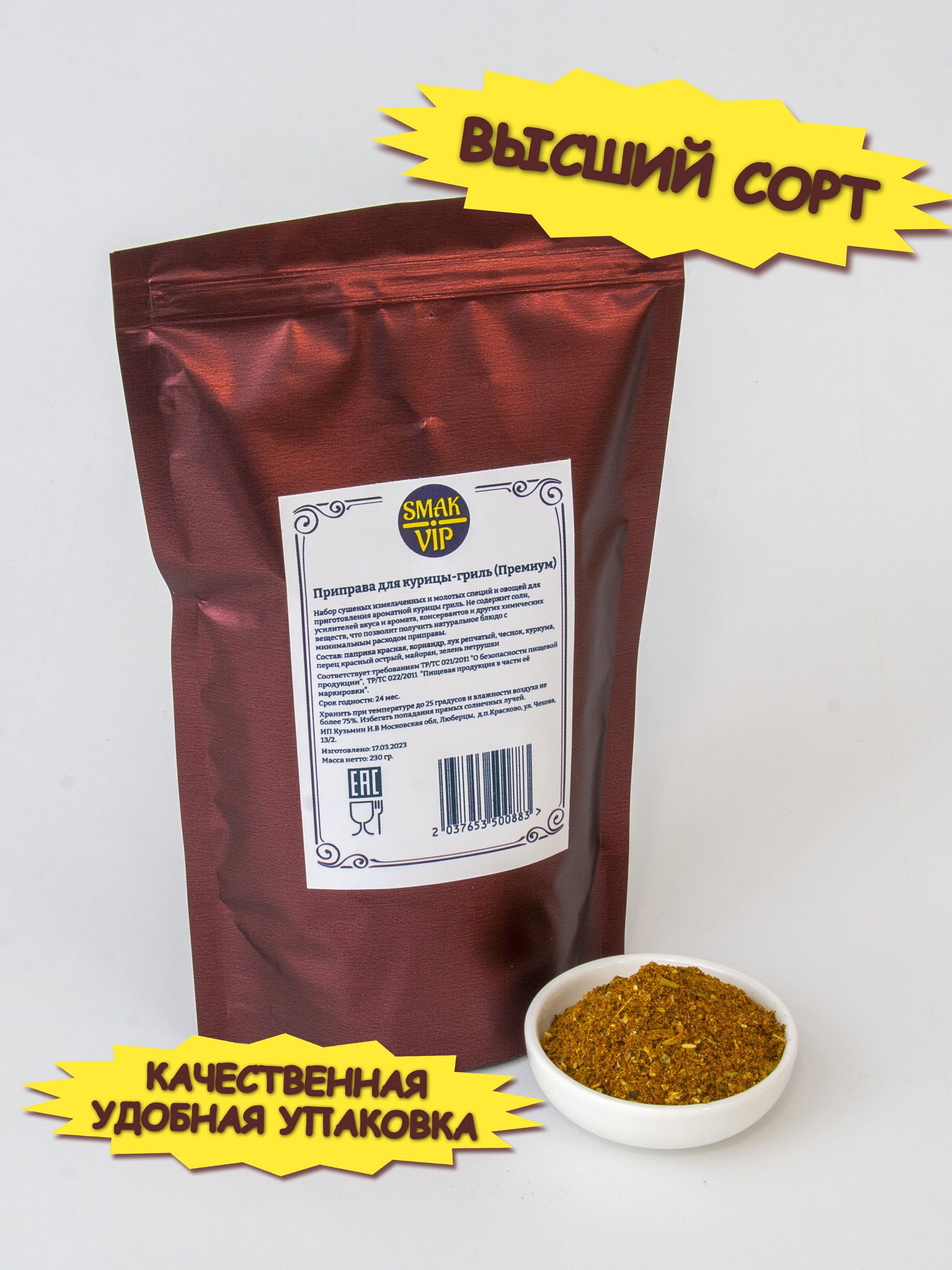 Описание: Приправа для курицы гриль — это смесь из различных специй и трав, которая добавляется на курицу перед грилем или жаркой. Обычно, данная приправа включает в себя паприку, чеснок, базилик, орегано, розмарин, соль и перец. Также в рецепты приправы может быть добавлен куркума или кайенский перец, который будет придавать немного остроты. В зависимости от рецептуры, приправа может быть сухой или жидкой.