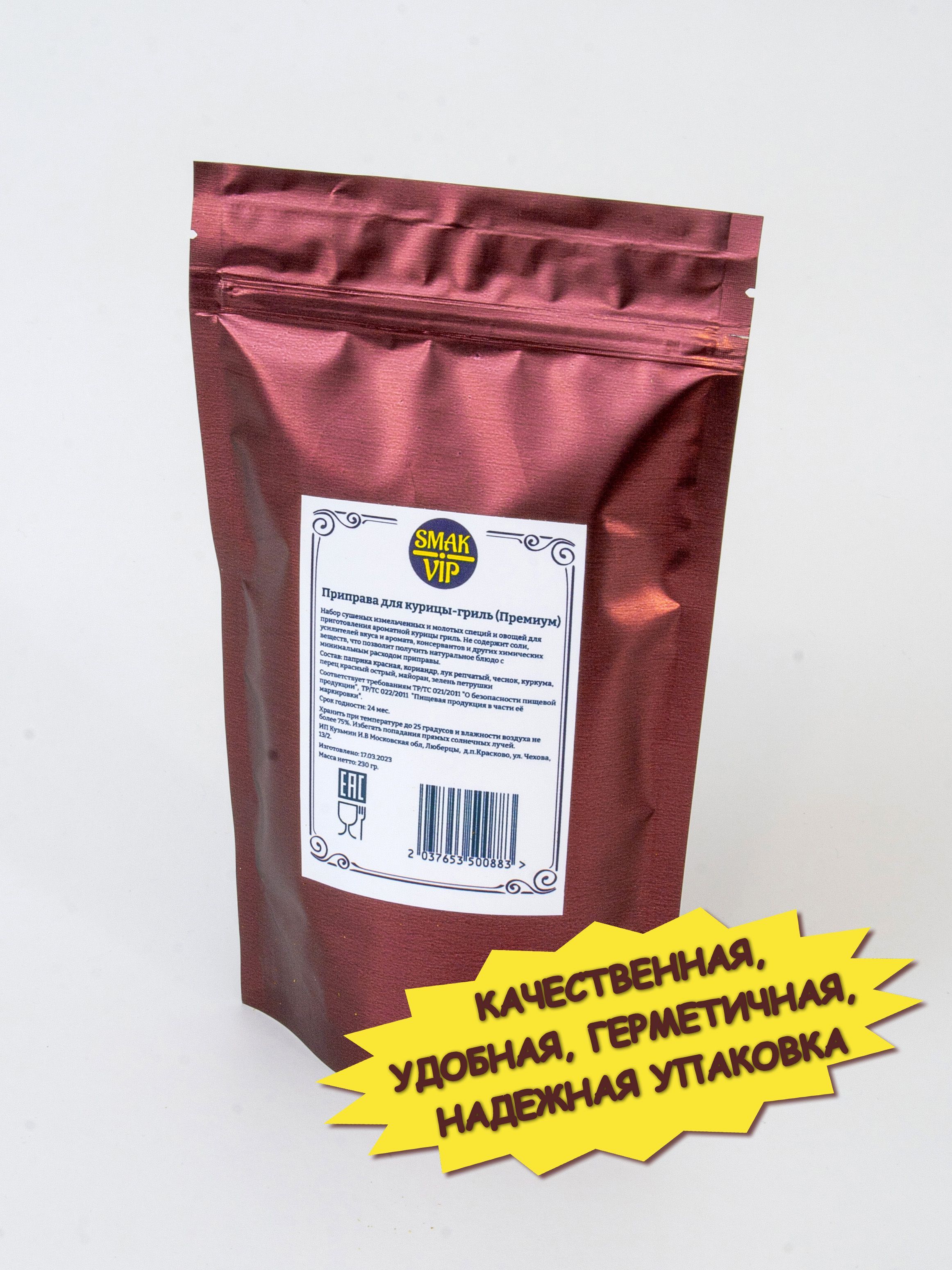 Приправа для жарки, запекания курицы в духовке, на гриле без соли Премиум, 230 гр.
