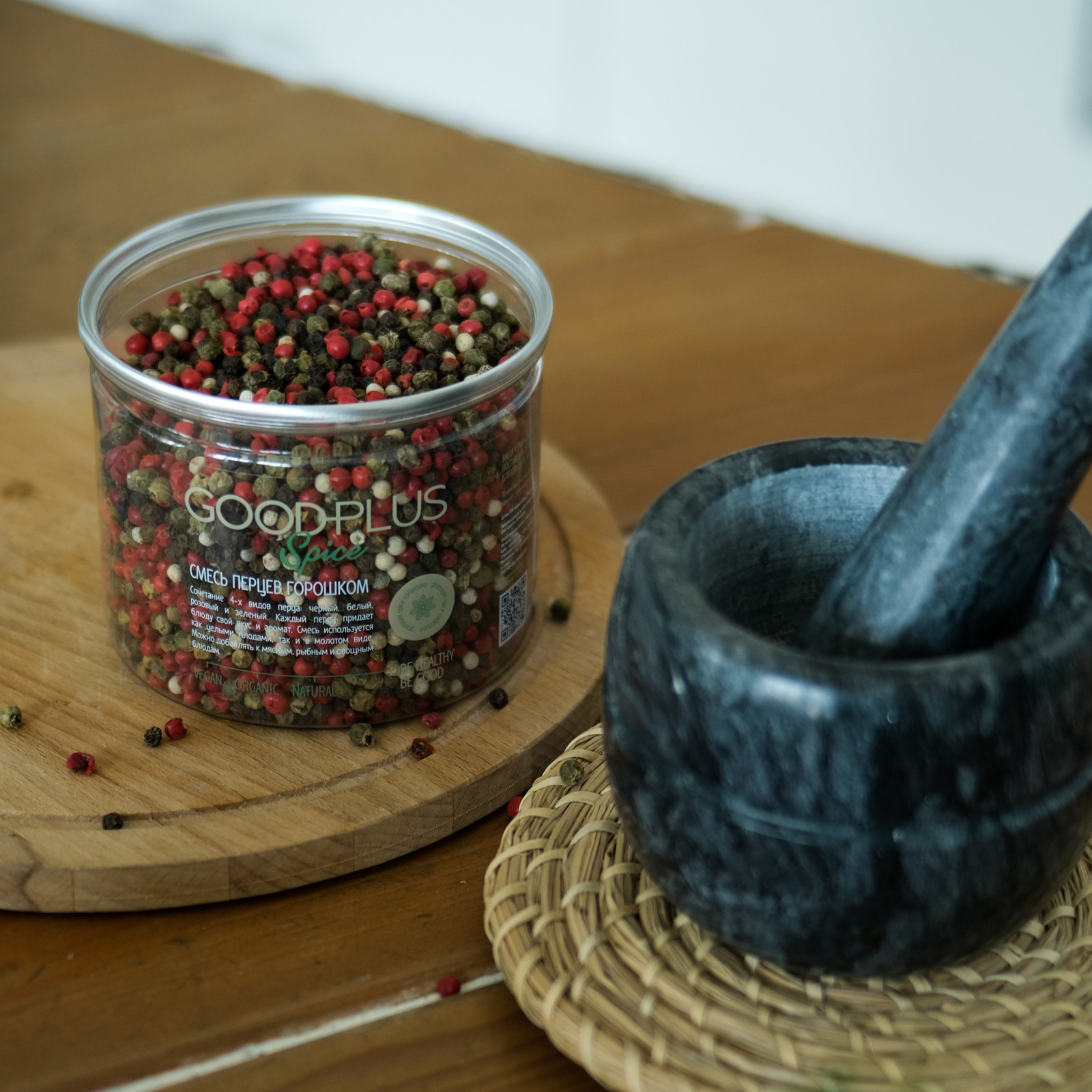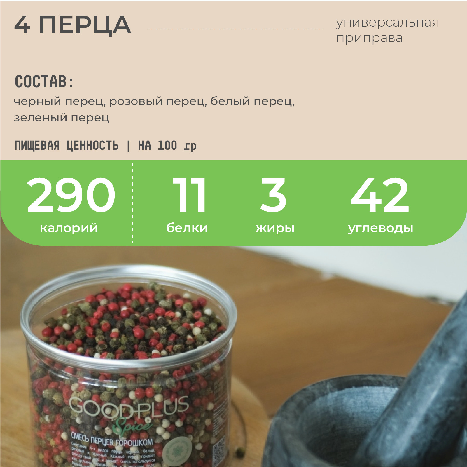 Приправа GOODPLUS Ассорти смесь 4 перца горошком ( розовый, черный, зеленый, белый ) для курицы, универсальная 250 грамм