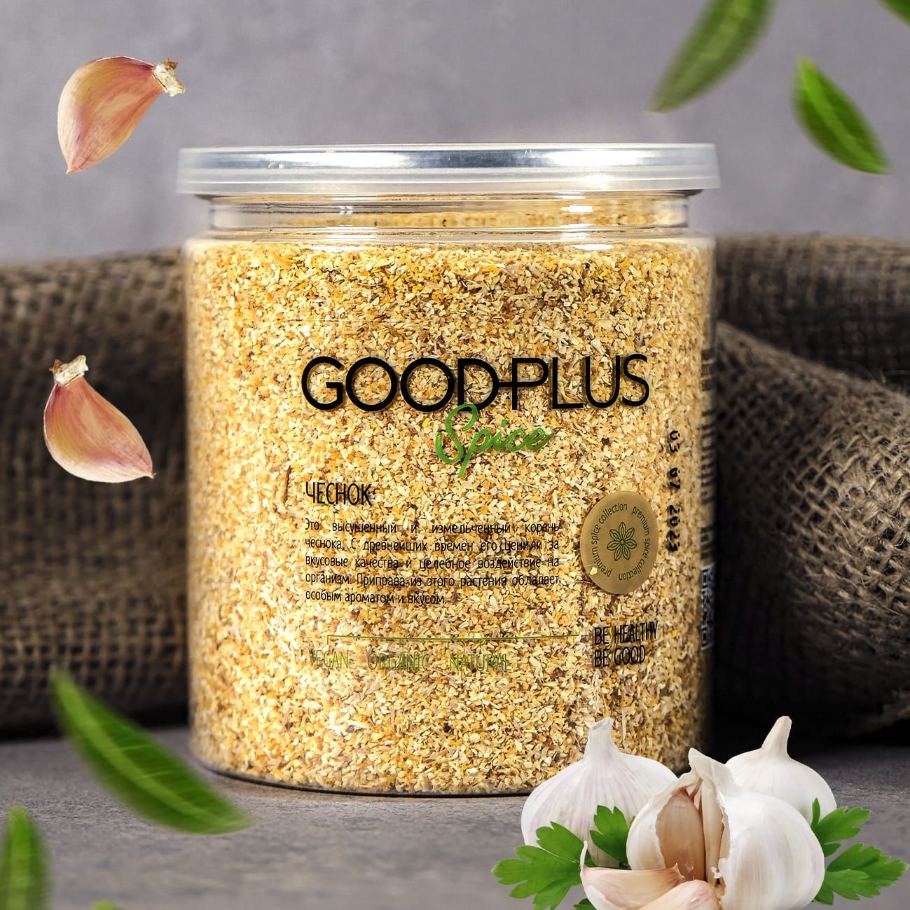 Приправа GOODPLUS Сушеный молотый чеснок для курицы, мяса, универсальная 300 грамм