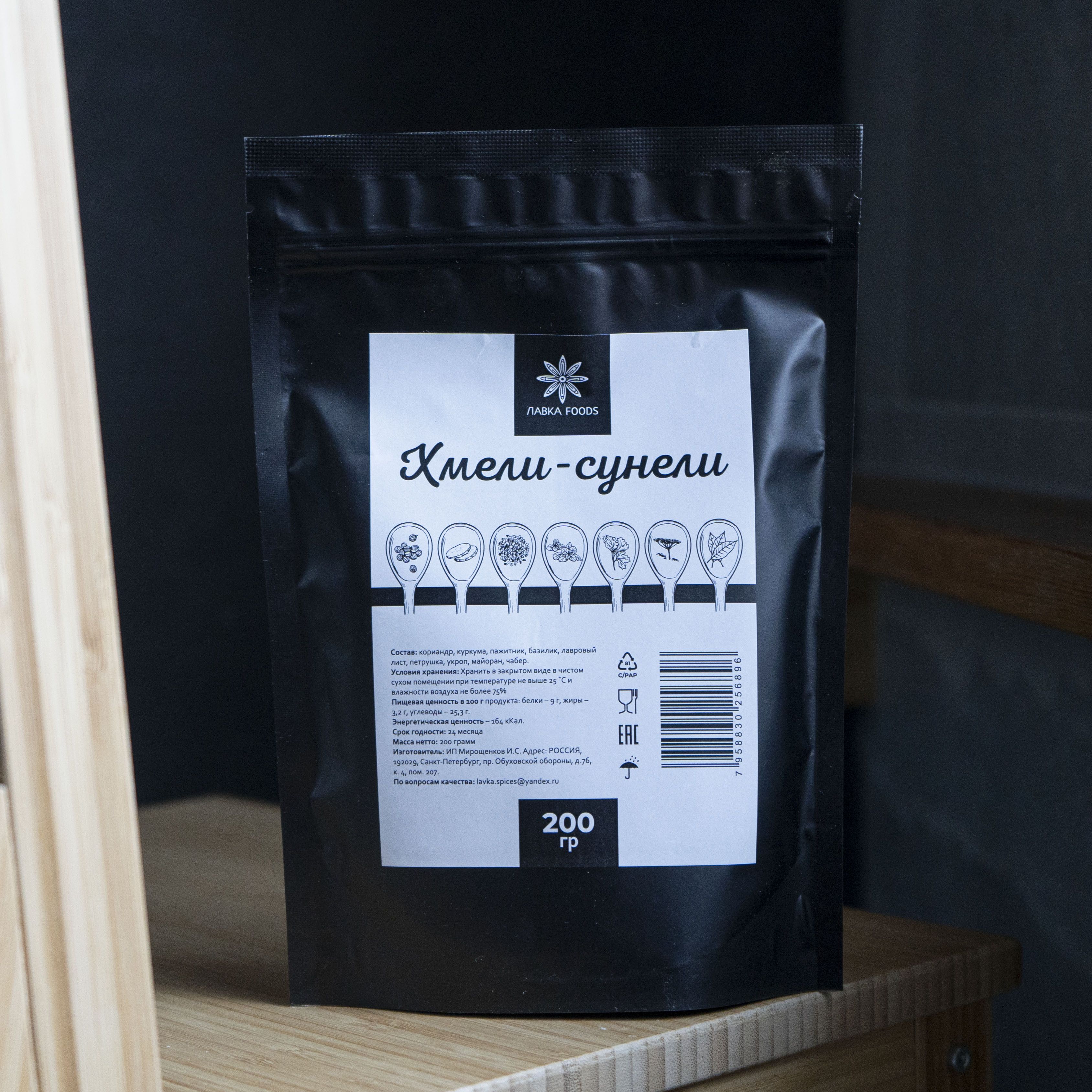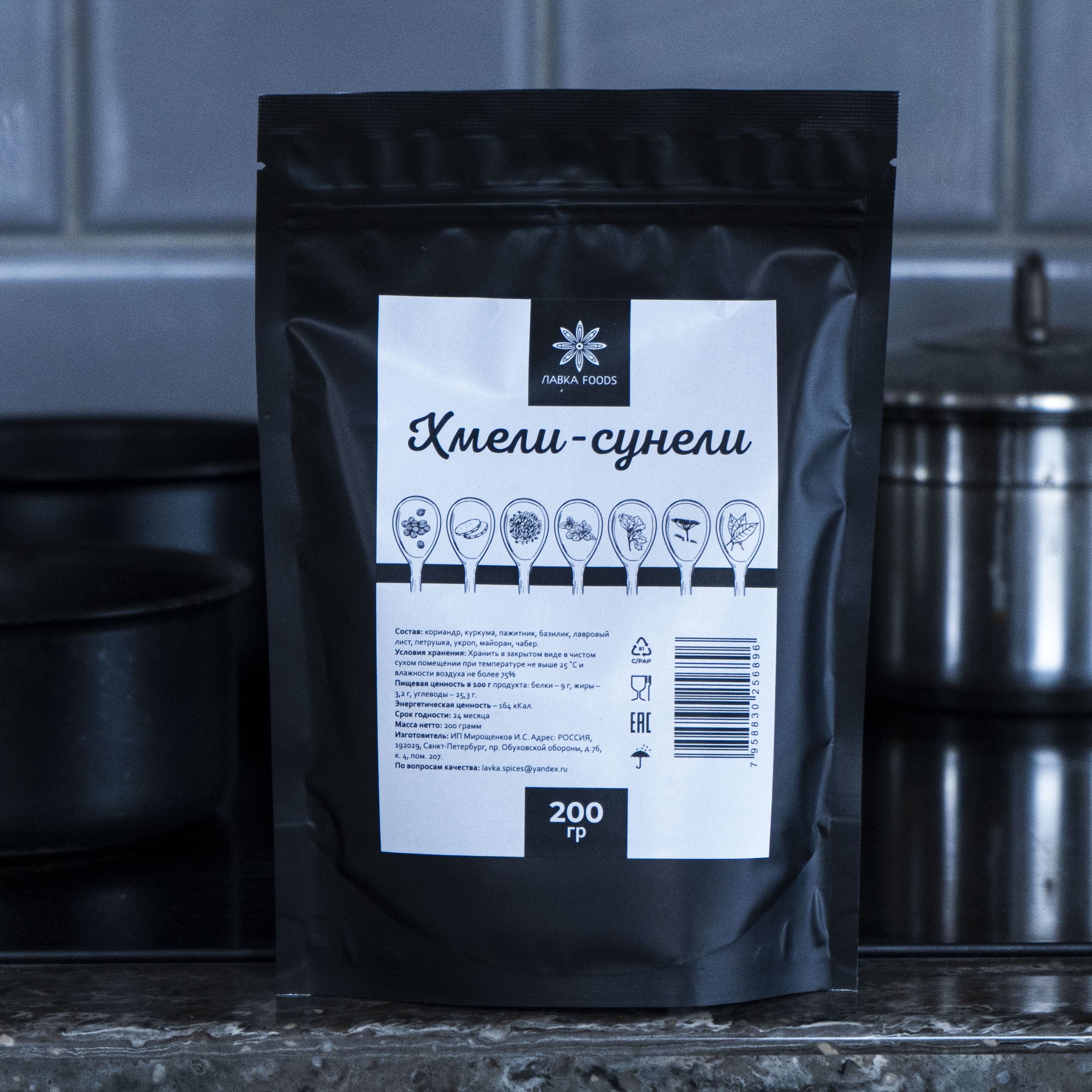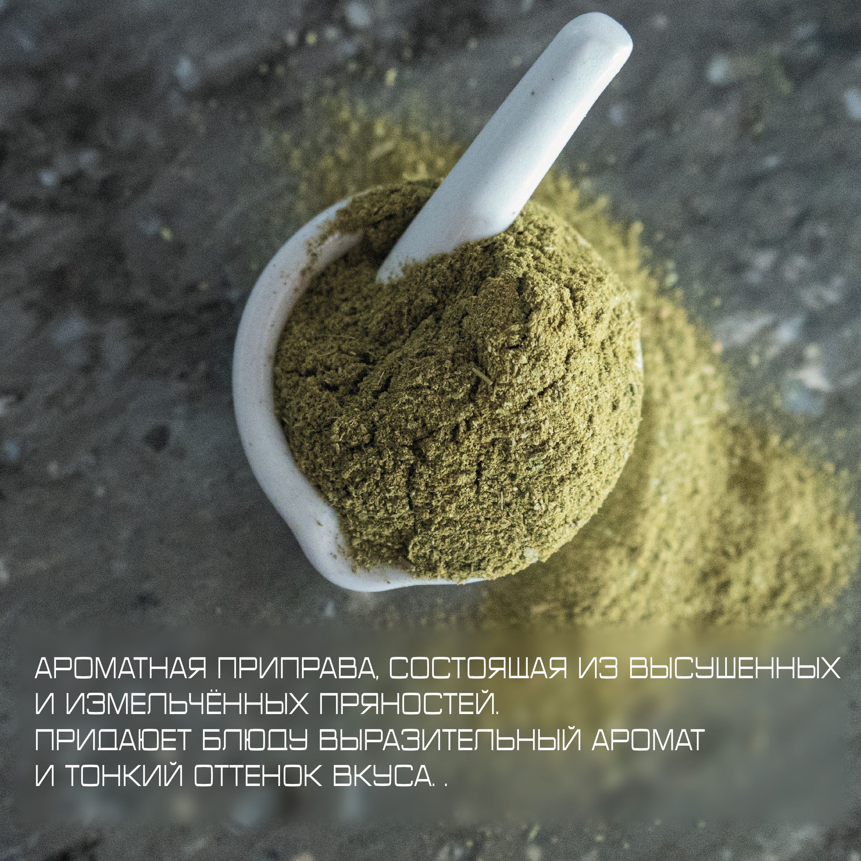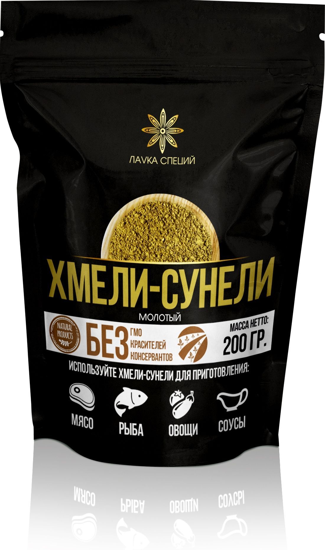 Описание: Ароматная приправа, состоящая из высушенных и мелко измельчённых пряностей. Это пряная смесь сушёных трав и специй, придающая блюду выразительный приятный аромат и тонкий оттенок вкуса. Надо сказать, хмели-сунели — одна из тех приправ, которые способны в корне поменять восприятие вкусовых и ароматических качеств блюда. Если некоторые специи дают едва заметную гамму вкусовых и ароматических оттенков, то при добавлении хмели-сунели в любое кулинарное сочетание, важно знать, что оно обретёт совсем новый гастрономический образ! Натуральный состав приправы: Кориандр, куркума, пажитник, базилик, лавровый лист, перец чили, укроп, майоран, чабер, мята.