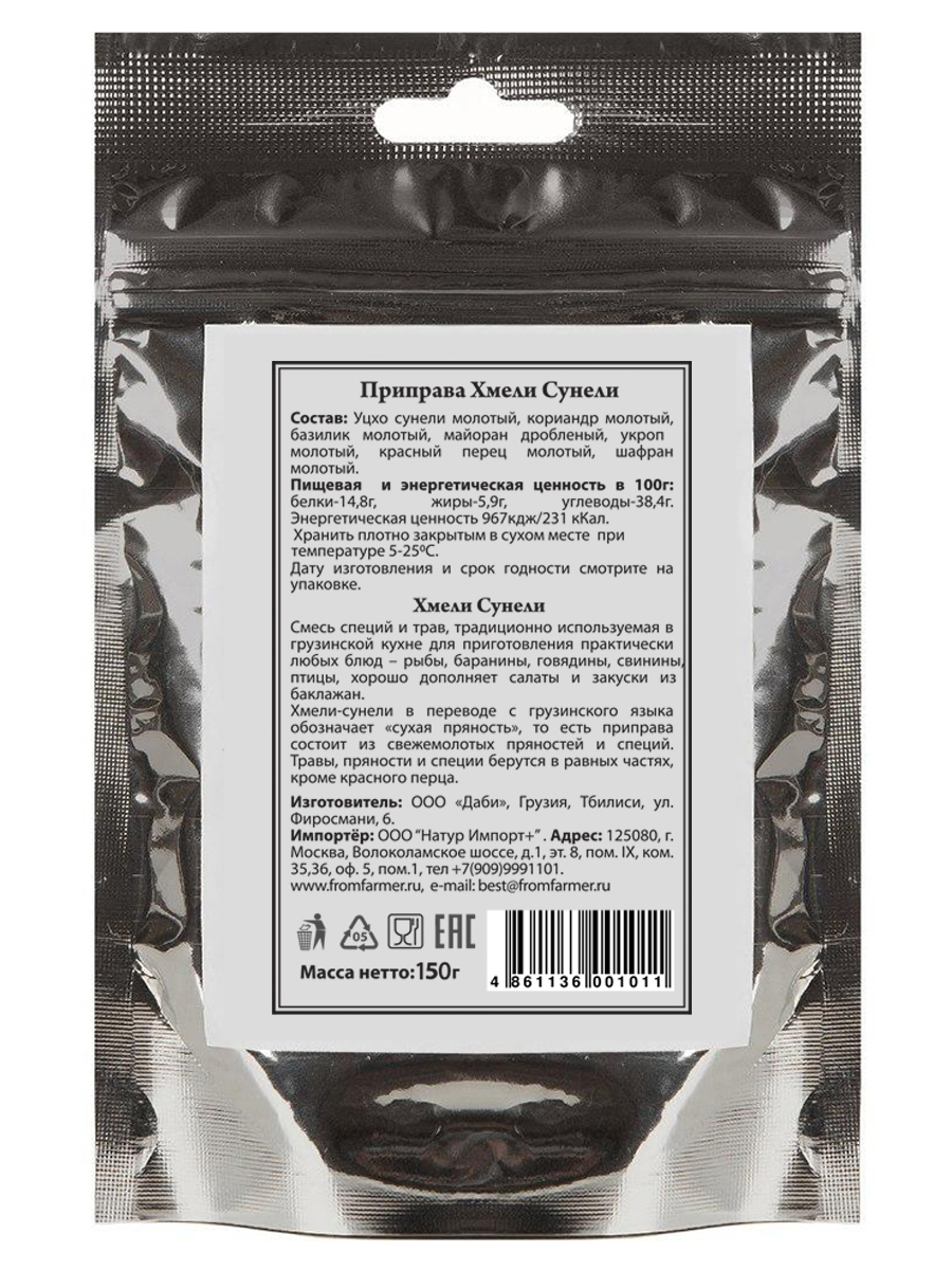 Описание: Смесь специй и трав, традиционно используемая в грузинской кухне для приготовления практически любых блюд – рыбе, баранине, говядине, свинине, птице, хорошо дополняет салаты и закуски из баклажан.