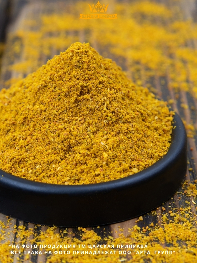 Описание: Текст при отключенной в браузере загрузке изображенийОписаниеКарри - приправа из смеси пряностей на основе корня куркумы, возникшая в Индии, к настоящему времени широко распространённая повсеместно.  Карри отличается неострым вкусом (хотя бывают и острые варианты смеси) и сильным характерным ароматом. Смесь специй и приправ «Карри» от Царской приправы разработана по аутентичной рецептуре северных штатов Индии и максимально адаптирована под европейский вкус.Текст при отключенной в браузере загрузке изображенийПолезные свойстваВитаминно-минеральный состав карри нормализует работу эндокринной системы, регулирует количество холестерина в крови, обеспечивает антибактериальную, противогрибковую защиту, способствует нормализации работы кишечника, защищает ЖКТ от вредоносных бактерий, выводит шлаки и токсины, замедляет процессы старения.Текст при отключенной в браузере загрузке изображенийПреимущества нашей продукцииГарантия качества продукции.
