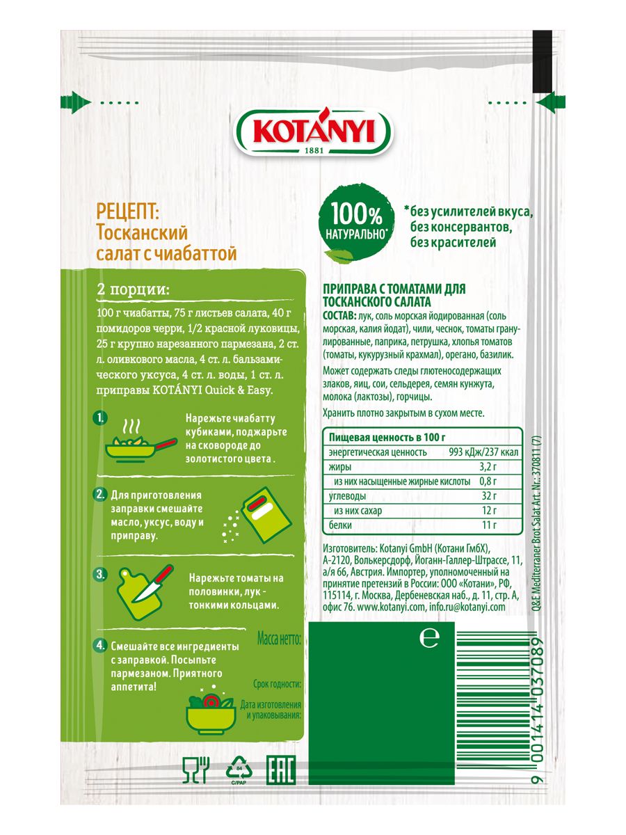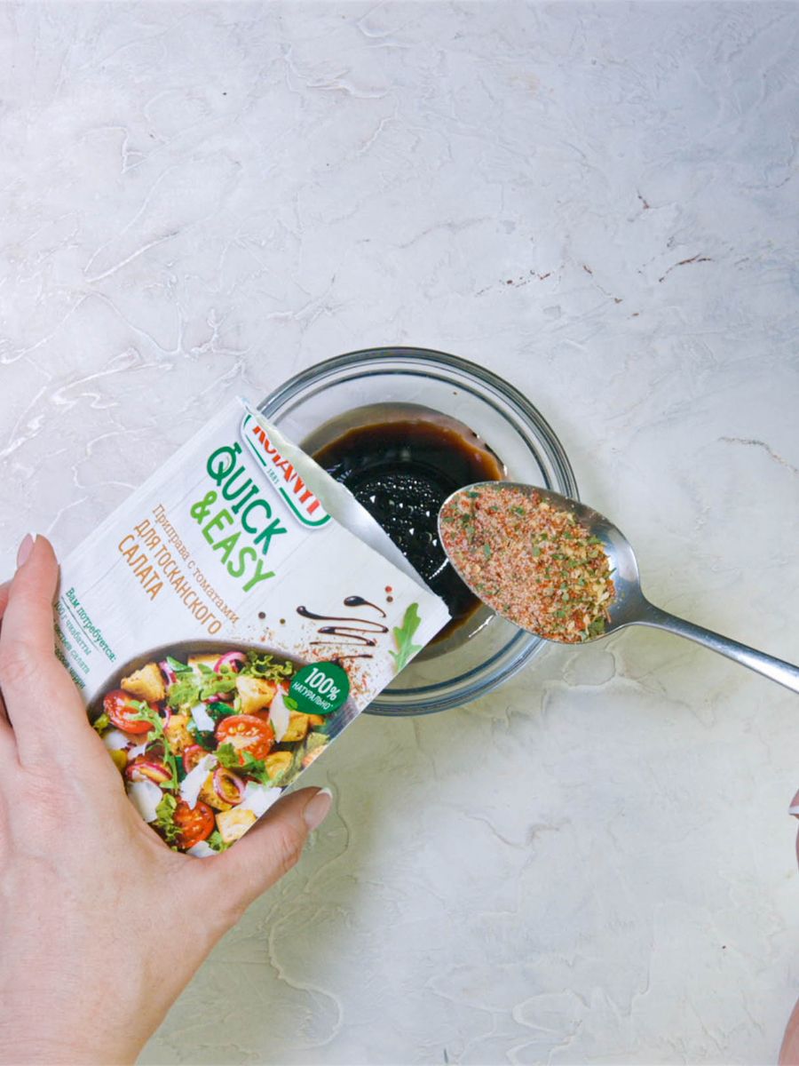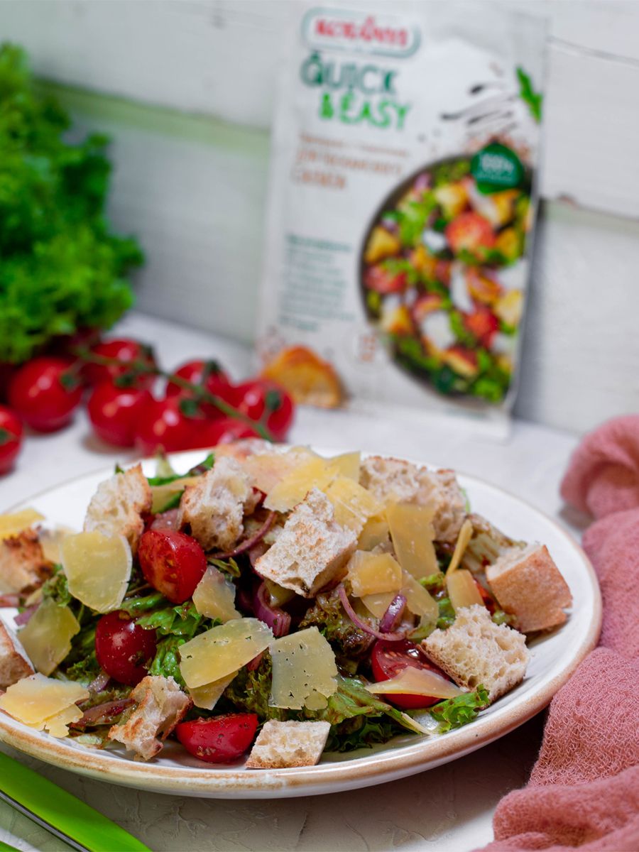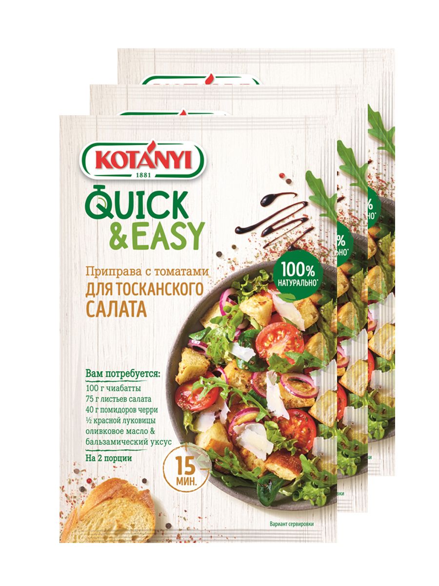 Описание: Приправа Quick & Easy от Kotanyi позволит приготовить вкусный средиземноморский салат с хлебом всего за 10 минут: рецепт и изысканная приправа для салата в одном.