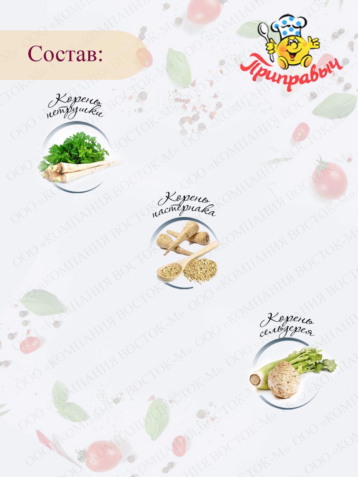 петрушки коренья, сельдерея корень, пастернака корень