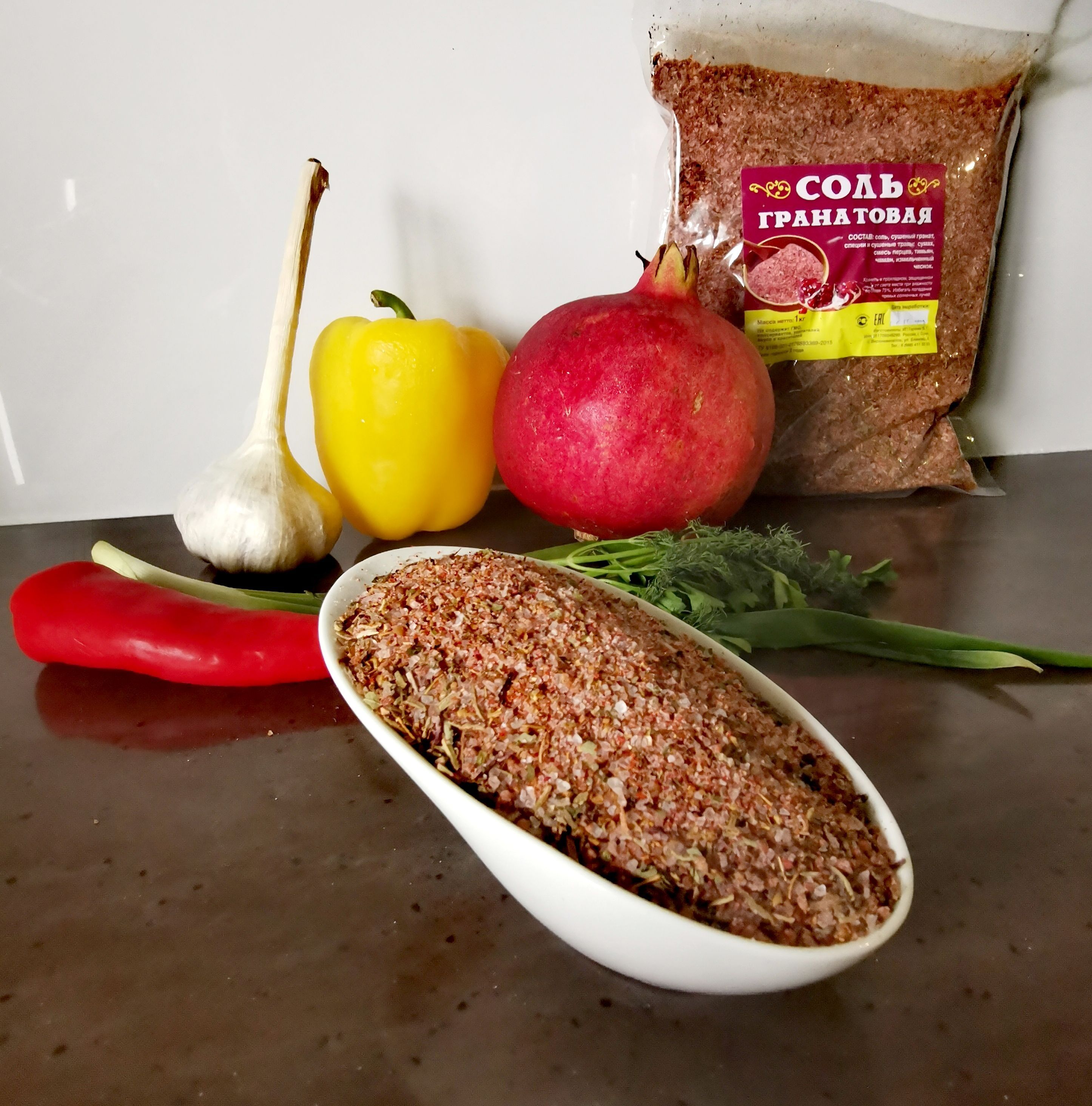 Сейчас у Вас есть возможность насладиться чудесной приправой «Соль гранатовая», которая удивительна тем, что соль в ней впитывает насыщенный аромат и обалденный вкус всех пряностей.