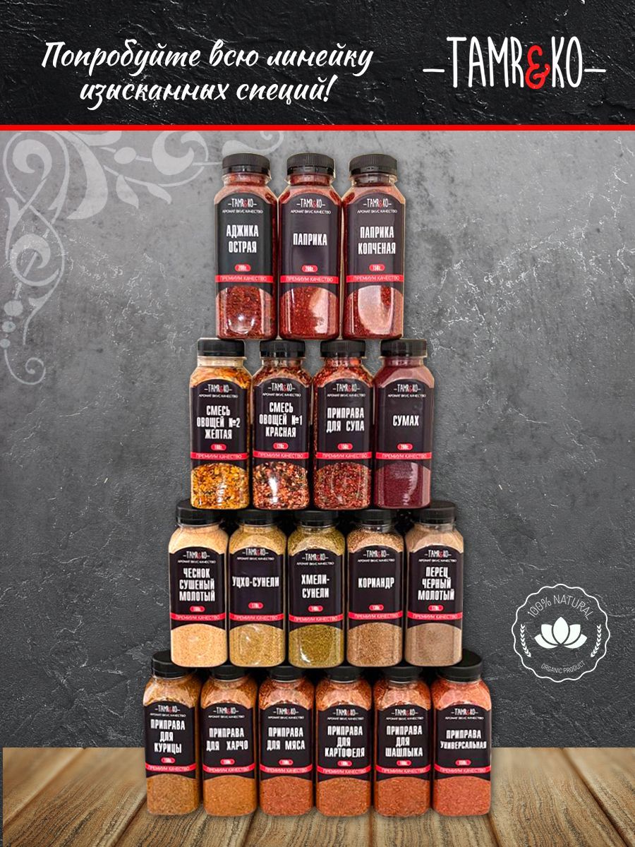 Описание: Уцхо-сунели - ароматная специя из Грузии с уникальным орехово-грибным вкусом. Приправа полезна при разных женских болезнях, она помогает устранить сбои в работе организма и замедлить прогрессирование недугов. Также ее рекомендуется добавлять в блюда для укрепления иммунной системы. Приправа благотворно воздействует на состояние ногтей, зубов и волос. Второе название специи - голубой пажитник. В переводе с грузинского языка уцхо сунели означает - чужой аромат. Объясняется это тем, что со временем аромат специи раскрывается и меняется, словно приобретает чужой запах. Приправу часто добавляют в разнообразные грузинские соусы. В Грузии уцхо сунели добавляют практически во все блюда, так как она делает их аромат пряным, а вкус - более ярким и нежным. Приправа уцхо-сунели придает необычный запах птице и баранине, делая такие кушанья изысканными и очень ароматными. Специи TAMR&KO - лучший подарок для Вас и ваших Любимых!