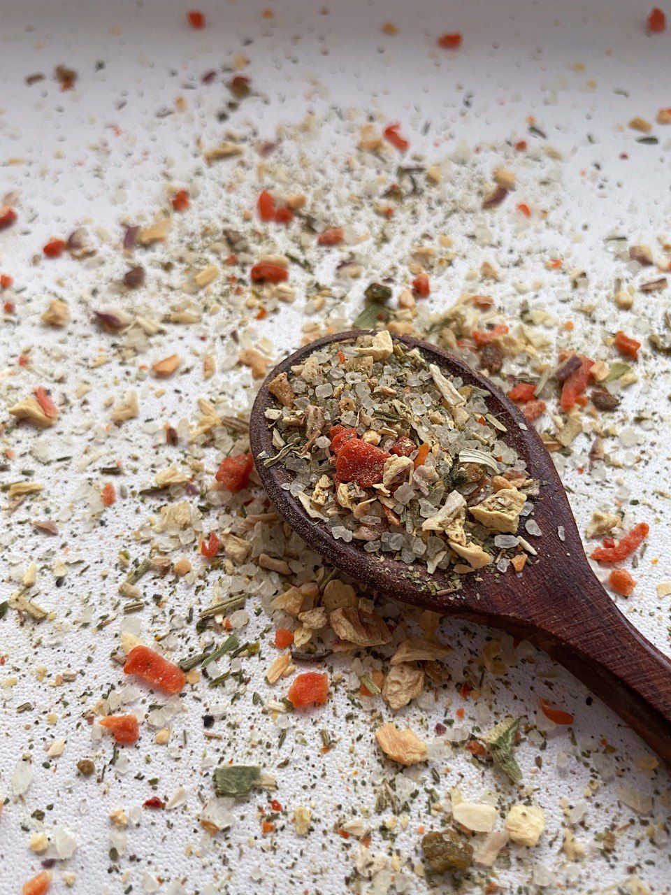 Морковь, лук, соль йодированная, корень петрушки, зелень укропа, куркума, имбирь, тимьян, корень пастернака, базилик, томаты, паприка, чеснок, пажитник, розмарин