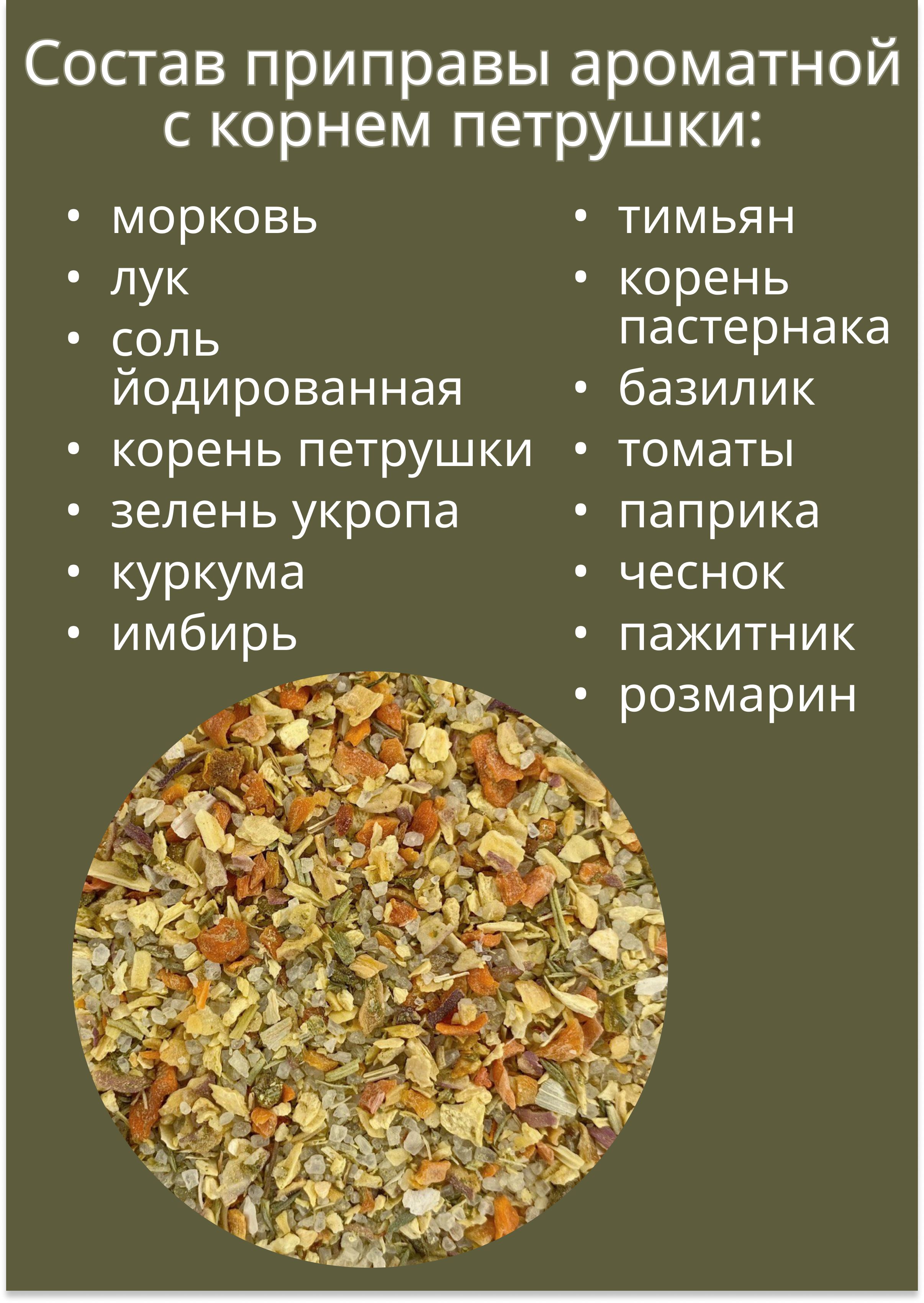 Описание: Приправа ароматная с корнем петрушки: добавьте неповторимый вкус и аромат вашим любимым блюдам с этой уникальной приправой!