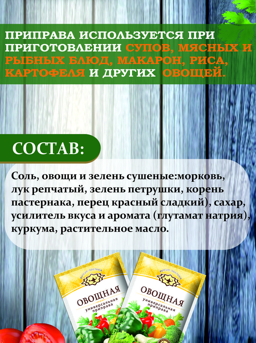 Приправа Универсальная "Овощная" смесь специи и пряности Магия Востока 5 пакетиков по 75 гр.