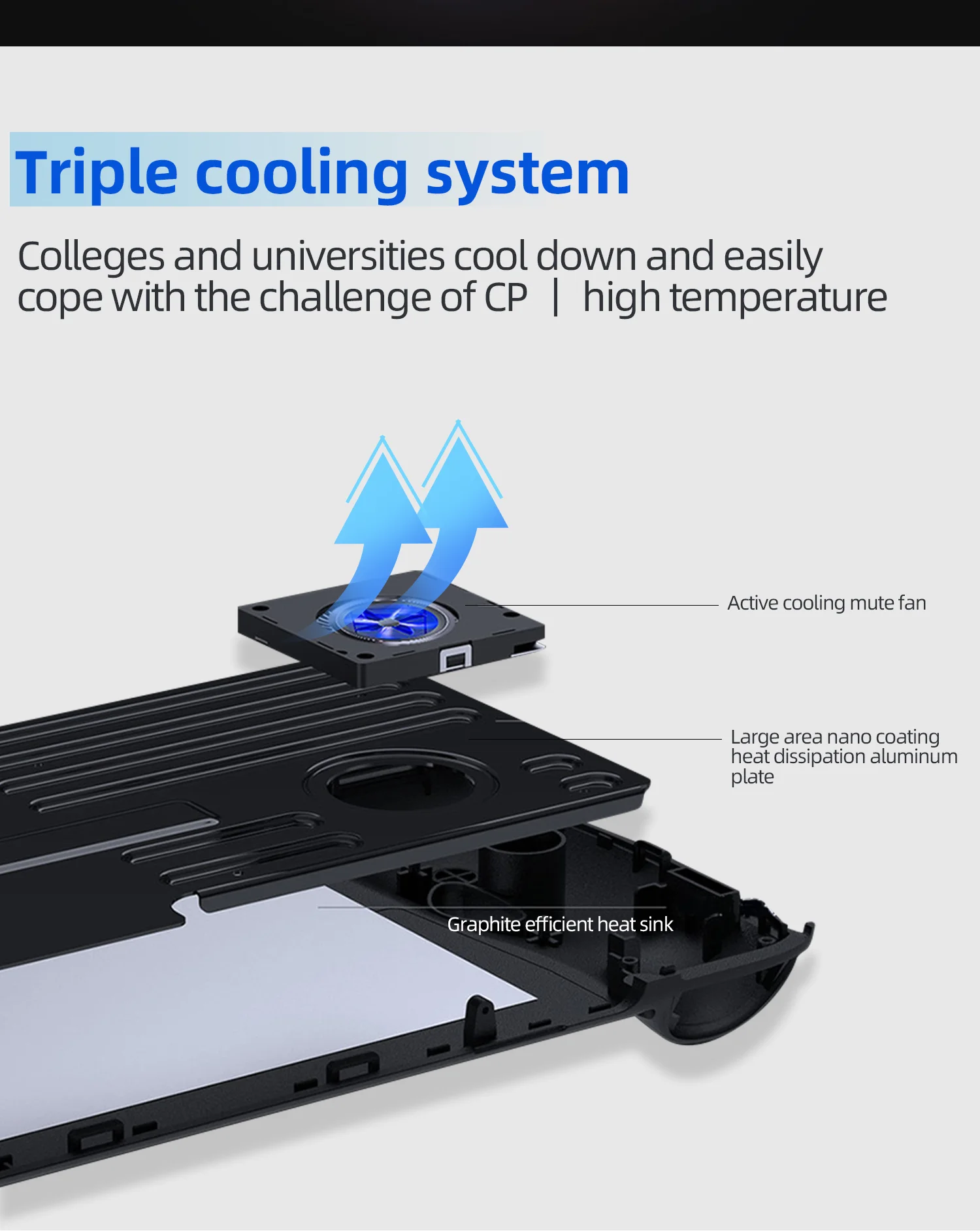 Система тройного охлаждения: Активный охлаждающий бесшумный вентилятор, охлаждающая алюминиевая пластина с нанопокрытием большой площади, эффективный Графеновый радиатор, легко справляется с высокой температурой процессора.