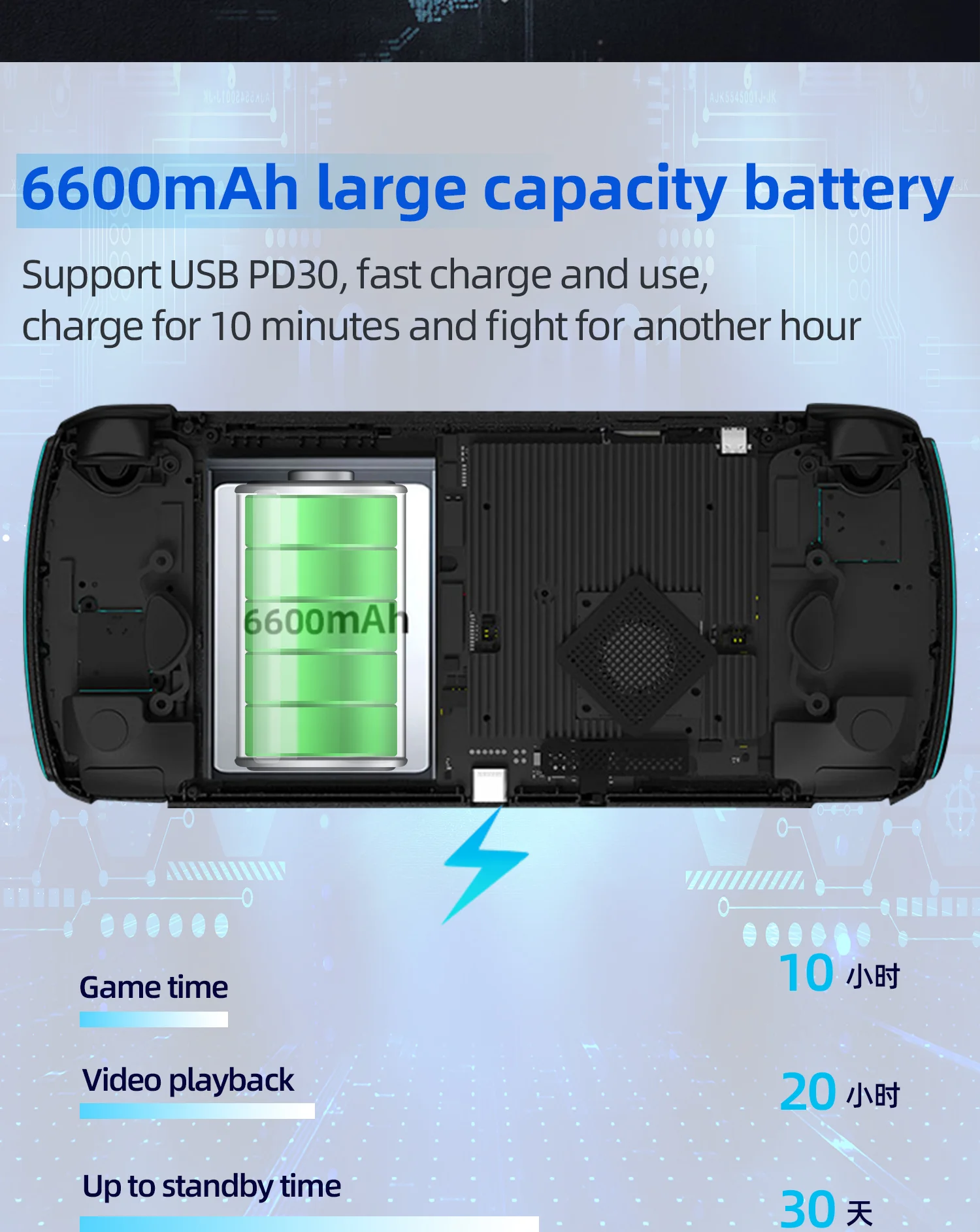 6600 мАч высокой емкости, поддержка быстрой зарядки USB PD3.0, длительный срок службы, длительный режим ожидания.