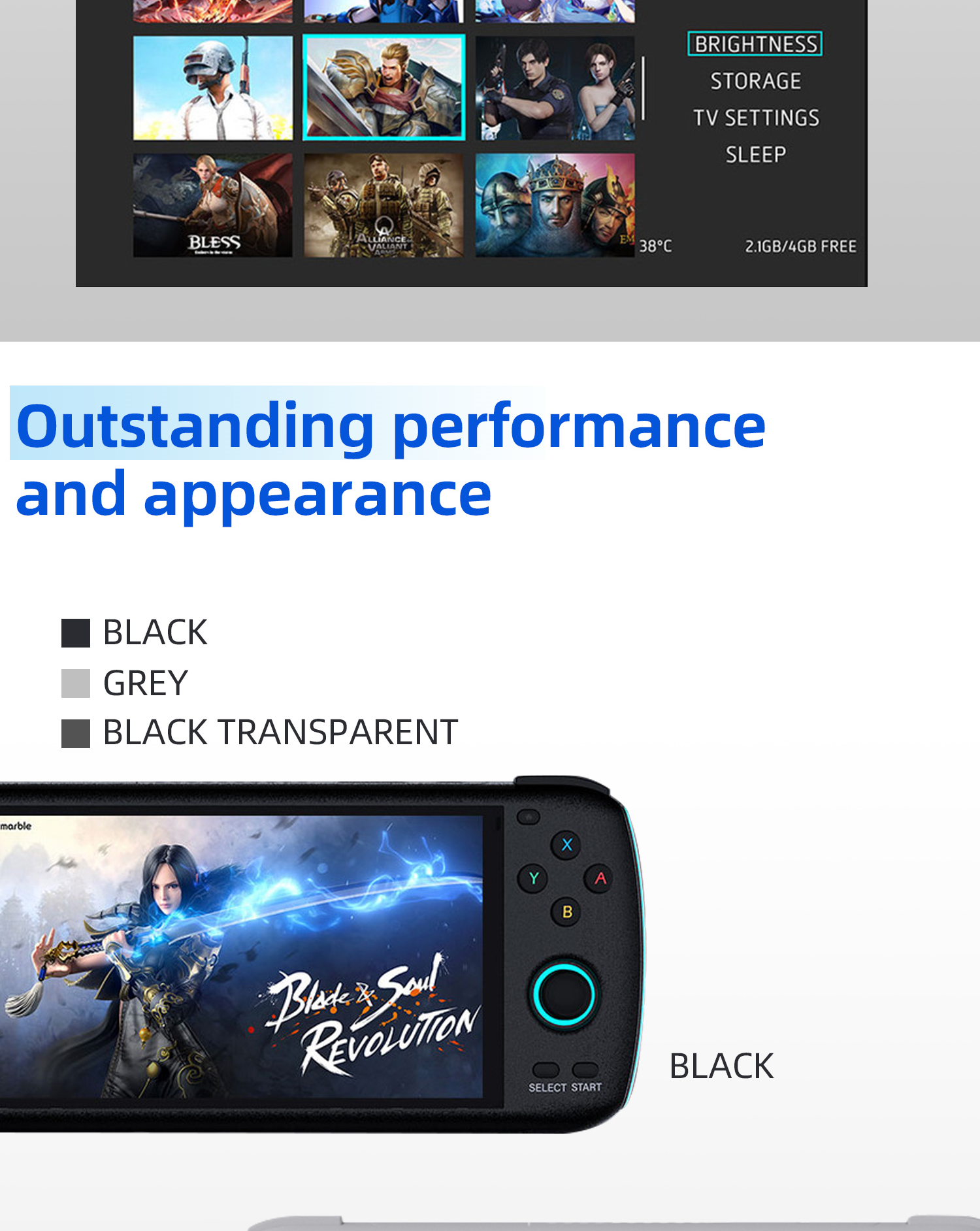 Цветная память: черный 4G 64G, черный 8G 128G, прозрачный черный 8G 128G, черный 8G 256G, прозрачный черный 8G 256G, серый 8G 256G (опционально)