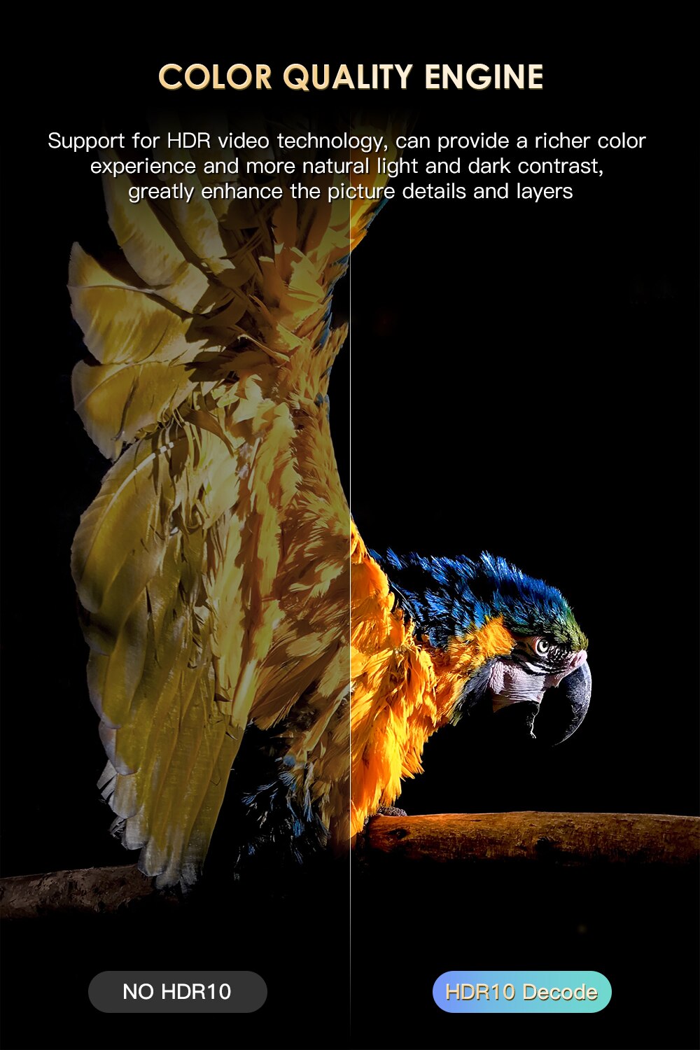 Поддержка видеотехнологии HDR, может обеспечить более насыщенные цвета и более естественный светлый и темный контраст, значительно улучшить детали и слои изображения