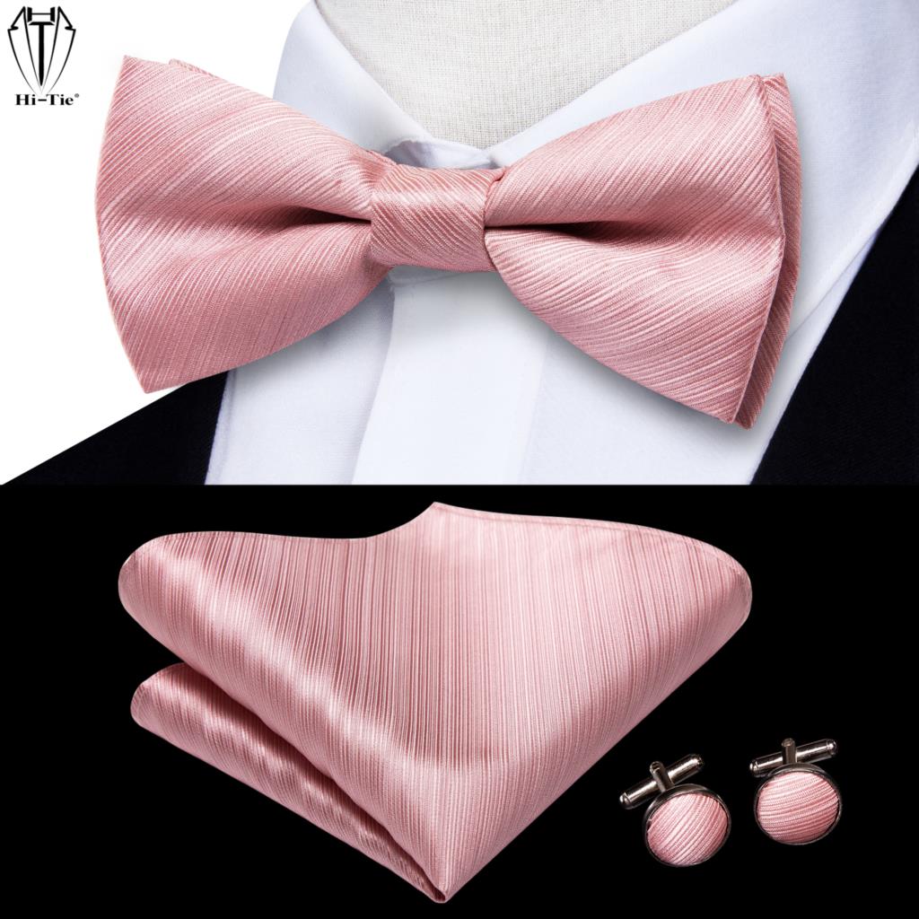 Привет-галстук Шелковый розовый полосатый мужской галстук-бабочка жаккардовый галстук-бабочка для взрослых платок запонки Набор Предварительно завязанная Бабочка бант Свадебная вечеринка