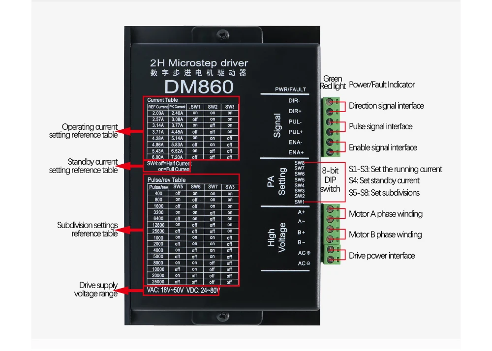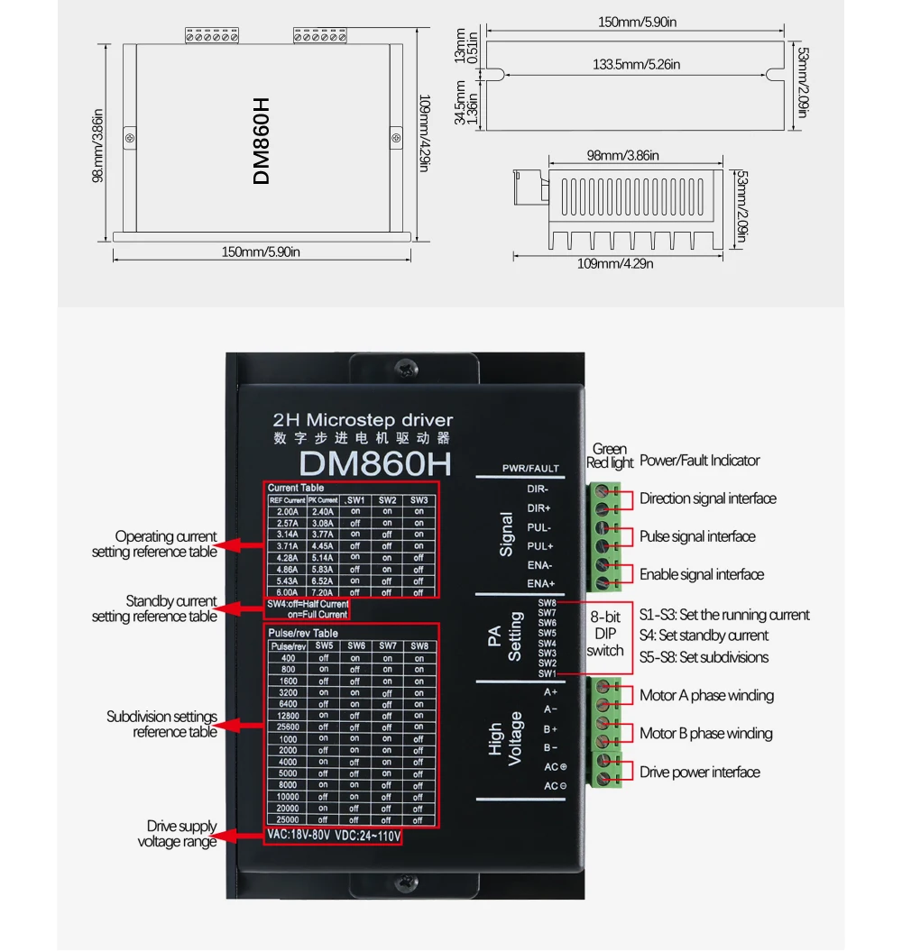 Привод шагового двигателя DM860H DM860 0-200 кГц AC18-80V или 24-110 В постоянного тока 2a-7. 2A 2H для микрошагового привода Nema34