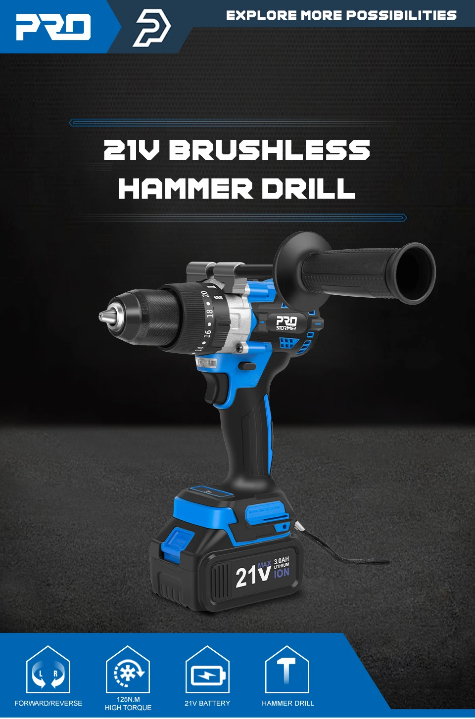 PRO PSBD2103 21V без щетки молоток 125N.m ударный электрический винтовый винтик беспроводной ледяной буриль электроинструмент от PROSTORMER