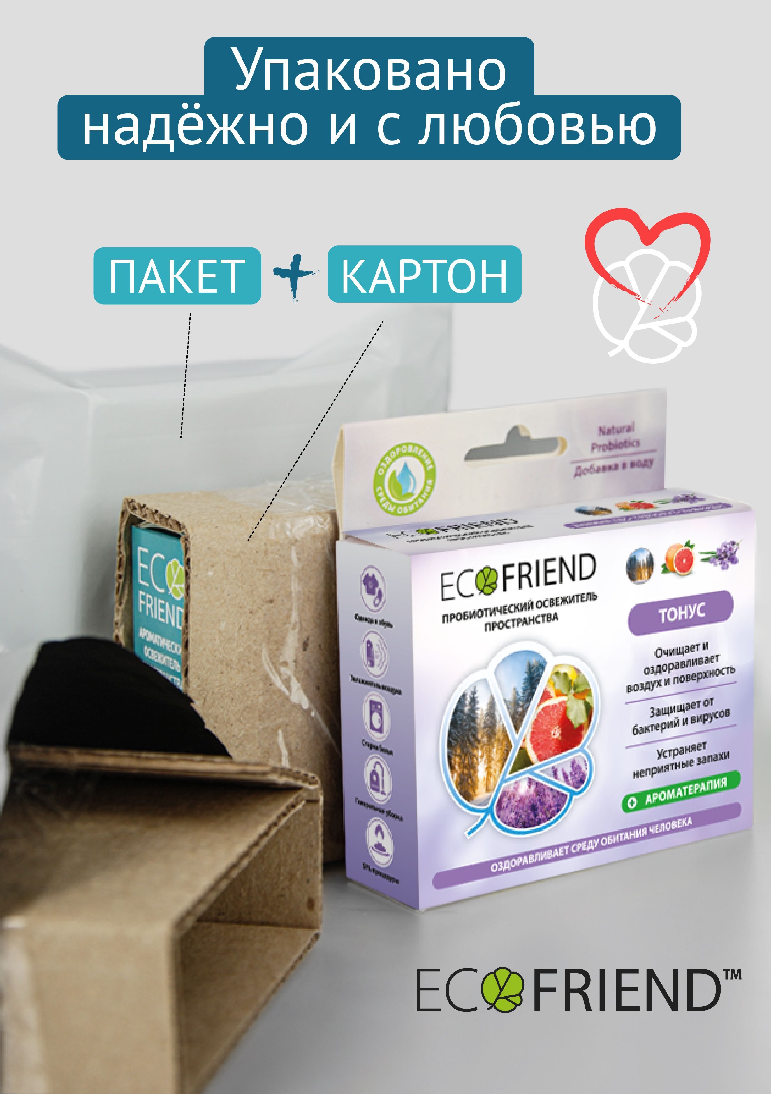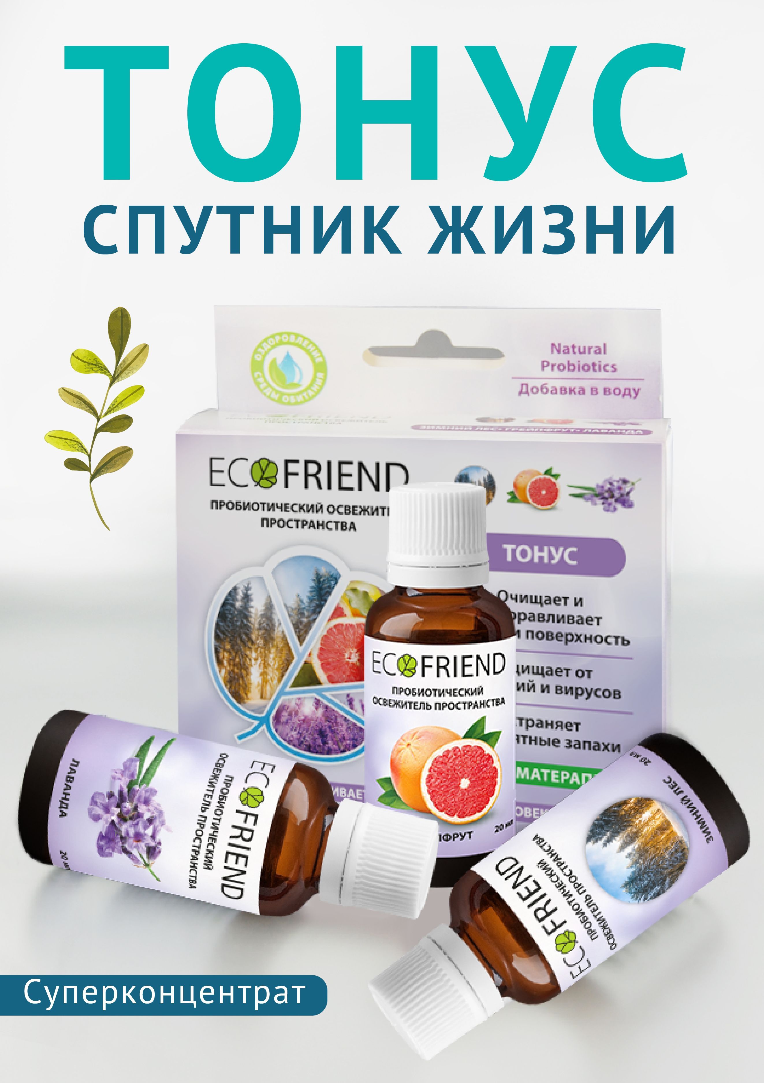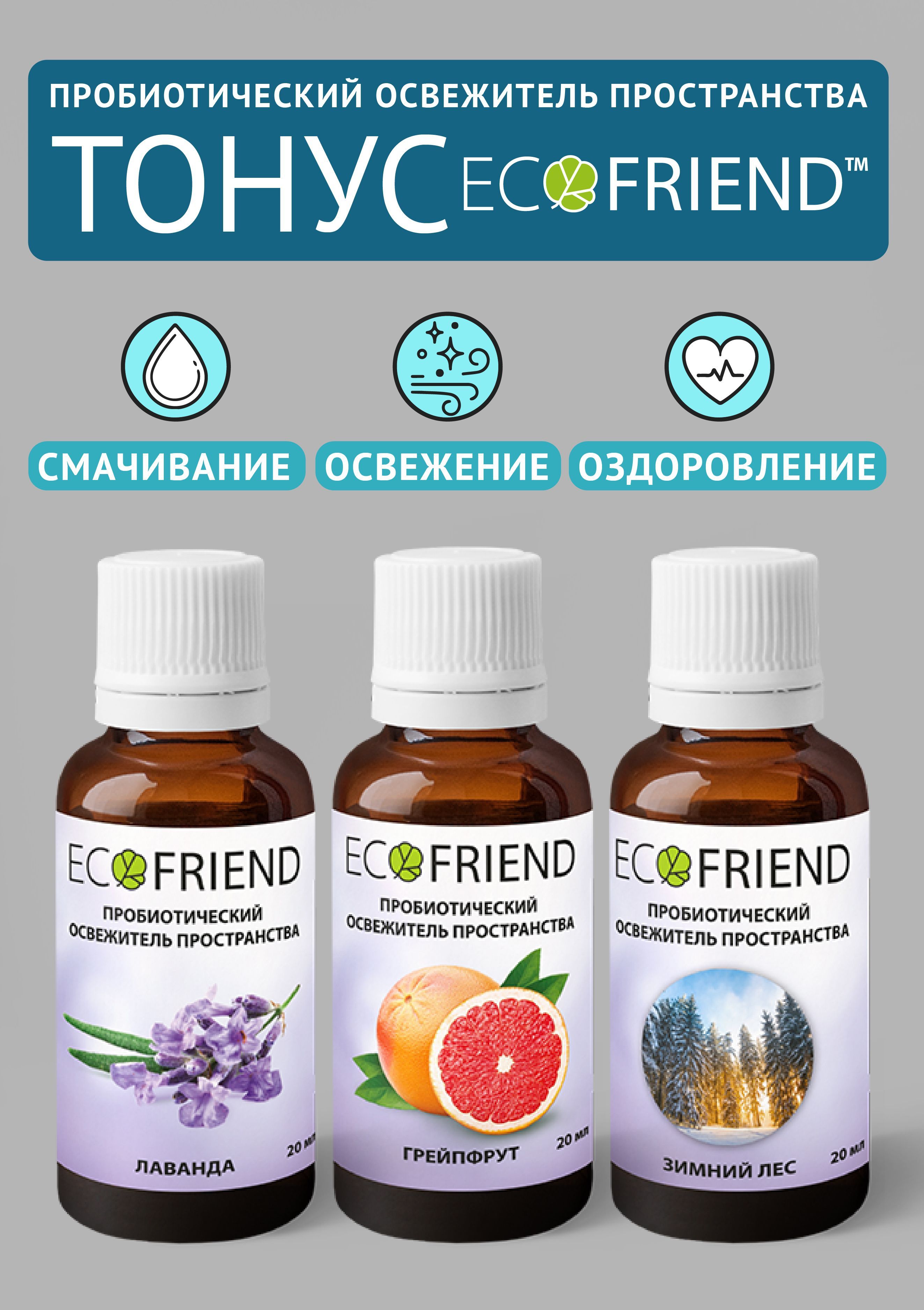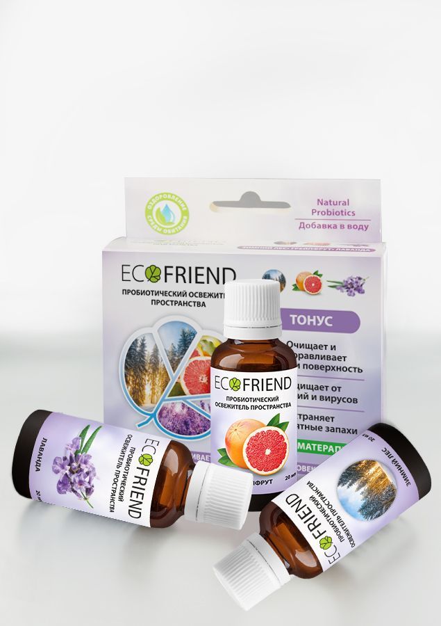 Набор концентратов из трёх освежителей пространства ECOFRIEND для . Всего один колпачок и весь воздух увлажнится быстрее, оздоровится от пыли и устранит микробы. Лёгкий шлейф аромата добавит присутствия оздоровительных концентратов. Добавка "ТОНУС" т.м. ECOFRIEND в Увлажнители и Мойки воздуха воздуха необходимы для качественного смачивания воздушного пространства, и его увлажнения, устранение всех аллергенов и микробов патогенной микрофлоры, создание пробиотической защиты , а также легкого приятного шлейфа ароматов для улучшения эмоционального и физического состояния.