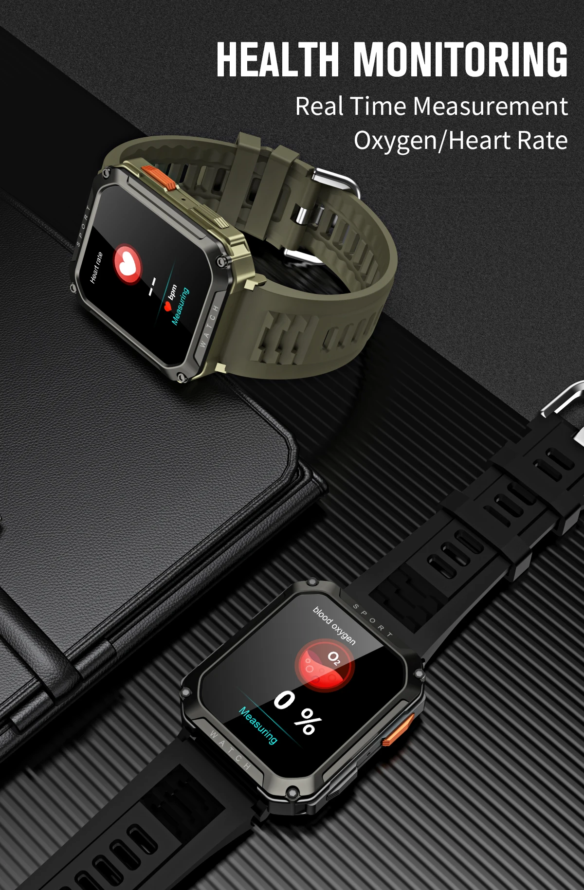 Прочные и долговечные военные Смарт-часы Ip68 Водонепроницаемые 2,01 дюйма HD дисплей Bluetooth голосовые Смарт-часы для Android IOS XIAOMI