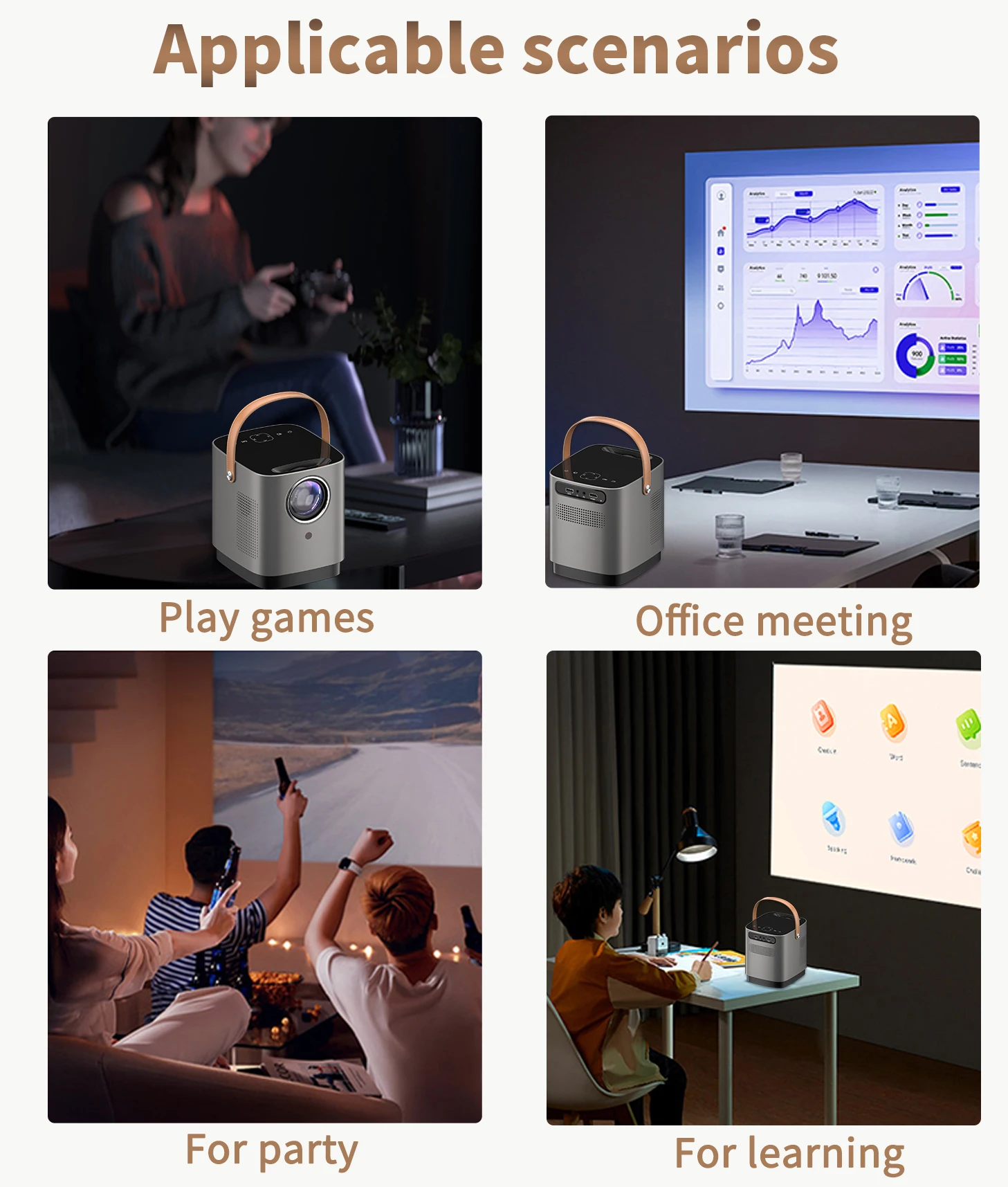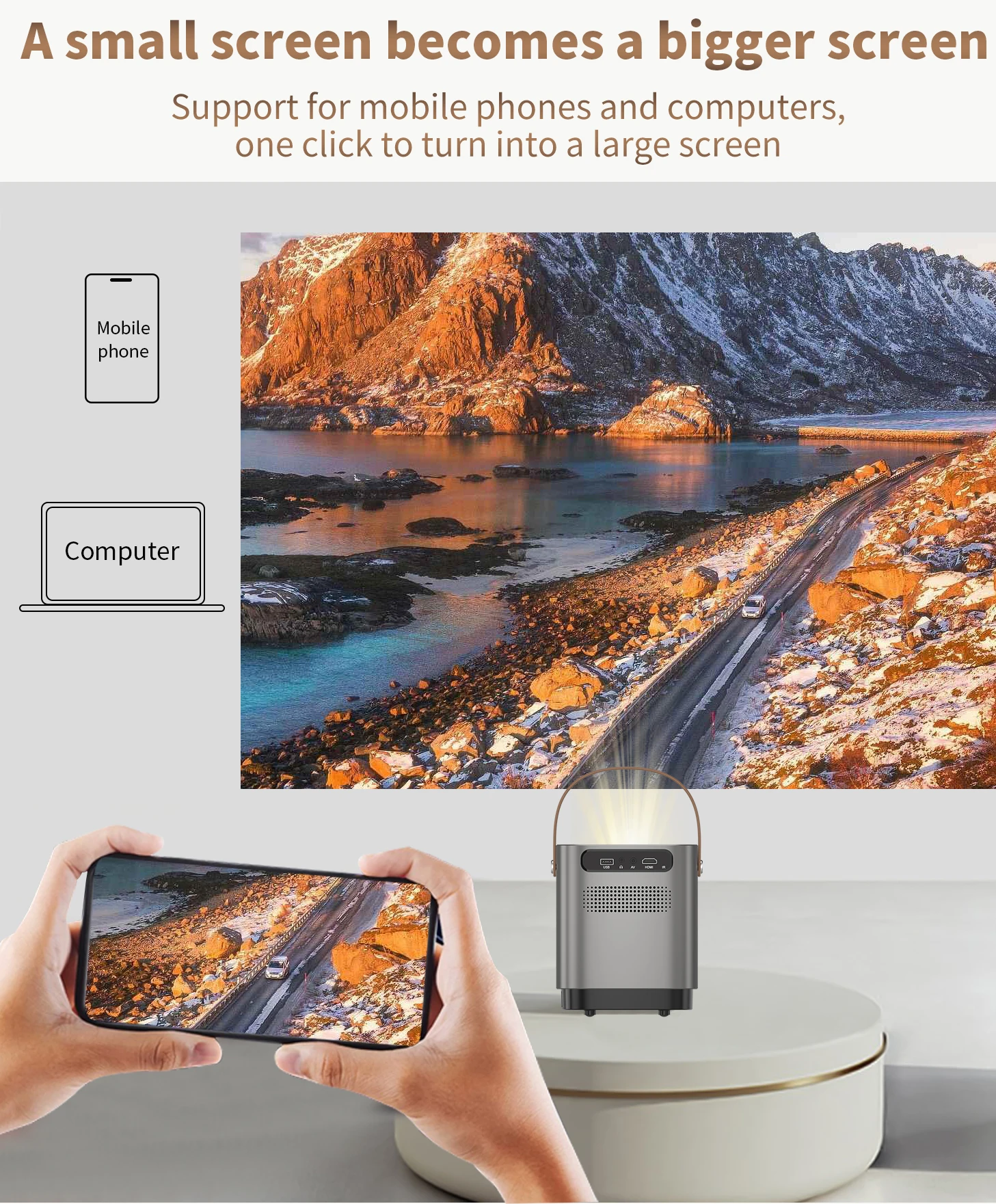 Accessories---Projector; Remote control;User Manual; AV cable; Power cable