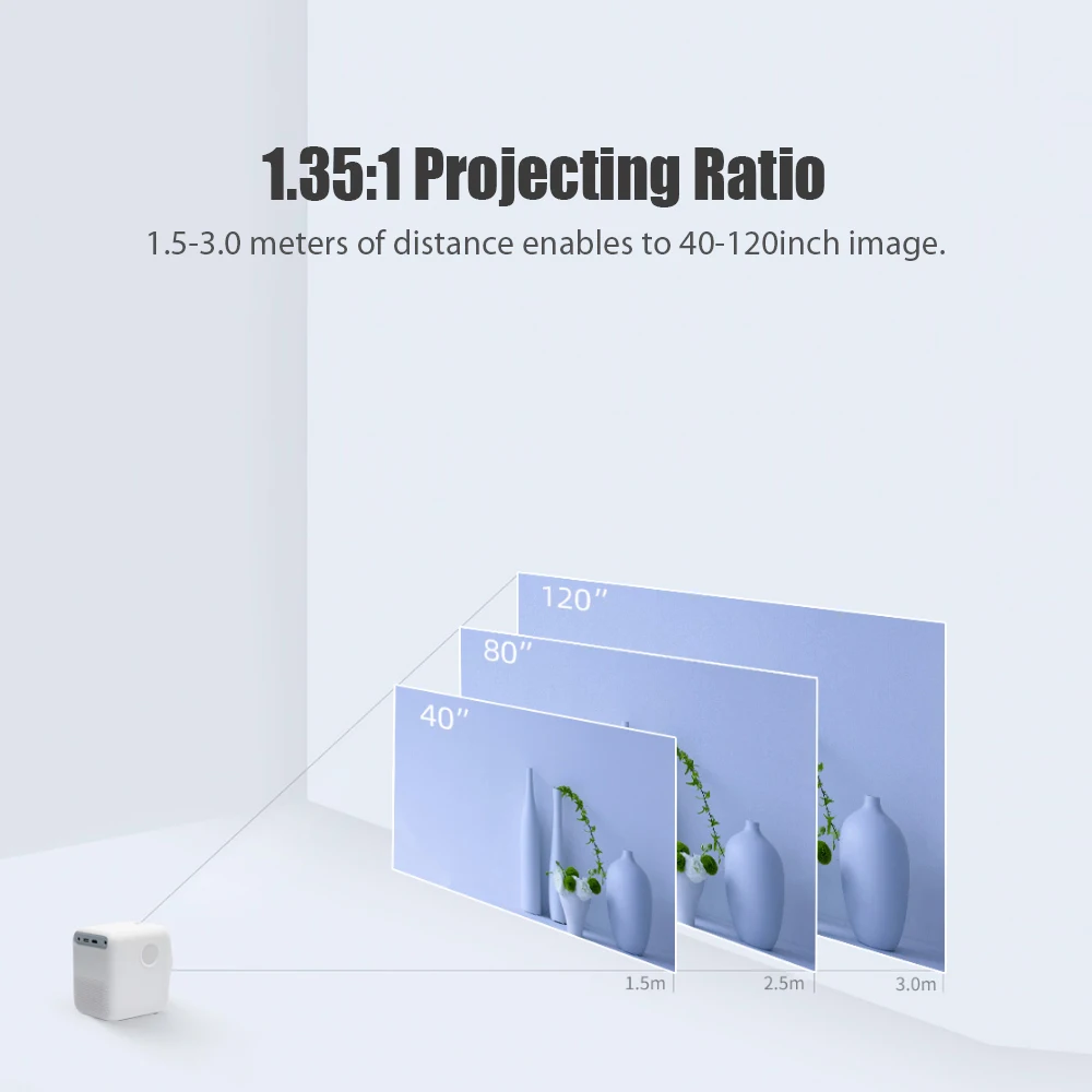 Проектор Wanbo T2 Free использует диффузную технологию отражения, чтобы сделать светильник мягкой и уменьшить нагрузку на глаза.