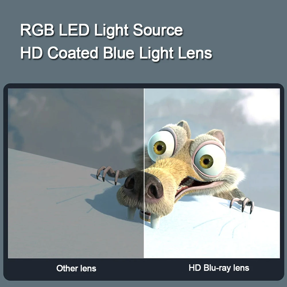 В этом проекторе используется эксклюзивная инновационная оптическая система и высококачественные оптические линзы, производимые японскими компаниями. В линзе используются несколько стеклянных линз с высоким показателем преломления. Объектив хорошо сфокусирован, края и центр изображения находятся в фокусе на 100%, что не позволяет глазу компенсировать фокус. Таким образом, проектор дружелюбен к глазам, и глаза не устают после длительного использования. Проектор имеет собственное разрешение 1920x1080, контрастность 12000:1 и срок службы лампы 50 000 часов. Революционный яркий Видеопроектор для всех ваших аудиовизуальных потребностей для офисных презентаций PowerPoint или домашних развлечений.