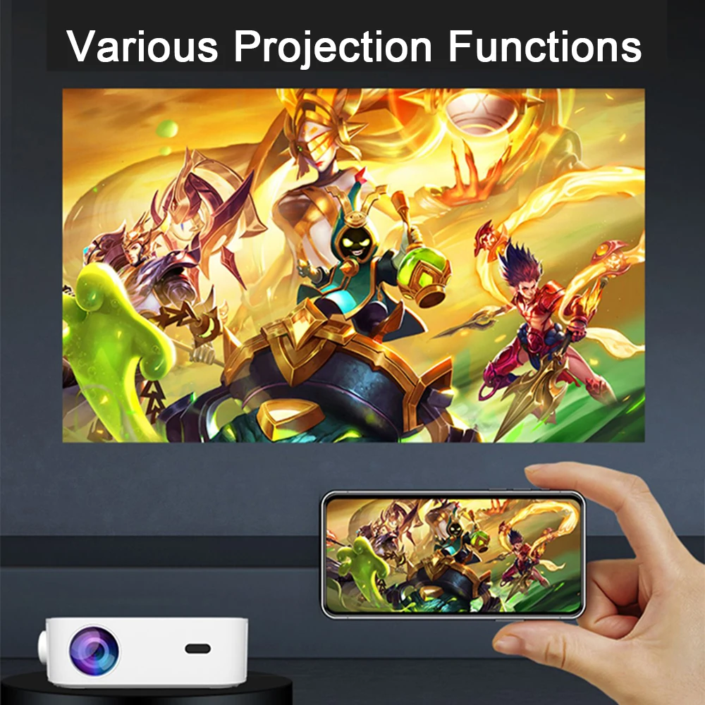 Портативный проектор для улицы адаптируется к технологии отображения экрана смартфона и может быть подключен к устройствам IOS/Android. Телефоны Android не нужно подключать к Wi-Fi. Включите функцию беспроводной проекции телефона Android и включите «Miracast» проектора для синхронизации с телефоном Android. Включите «зеркальное отображение экрана» на мобильном телефоне IOS и Подключитесь к тому же Wi-Fi с проектором, чтобы добиться такого же воспроизведения на экране.