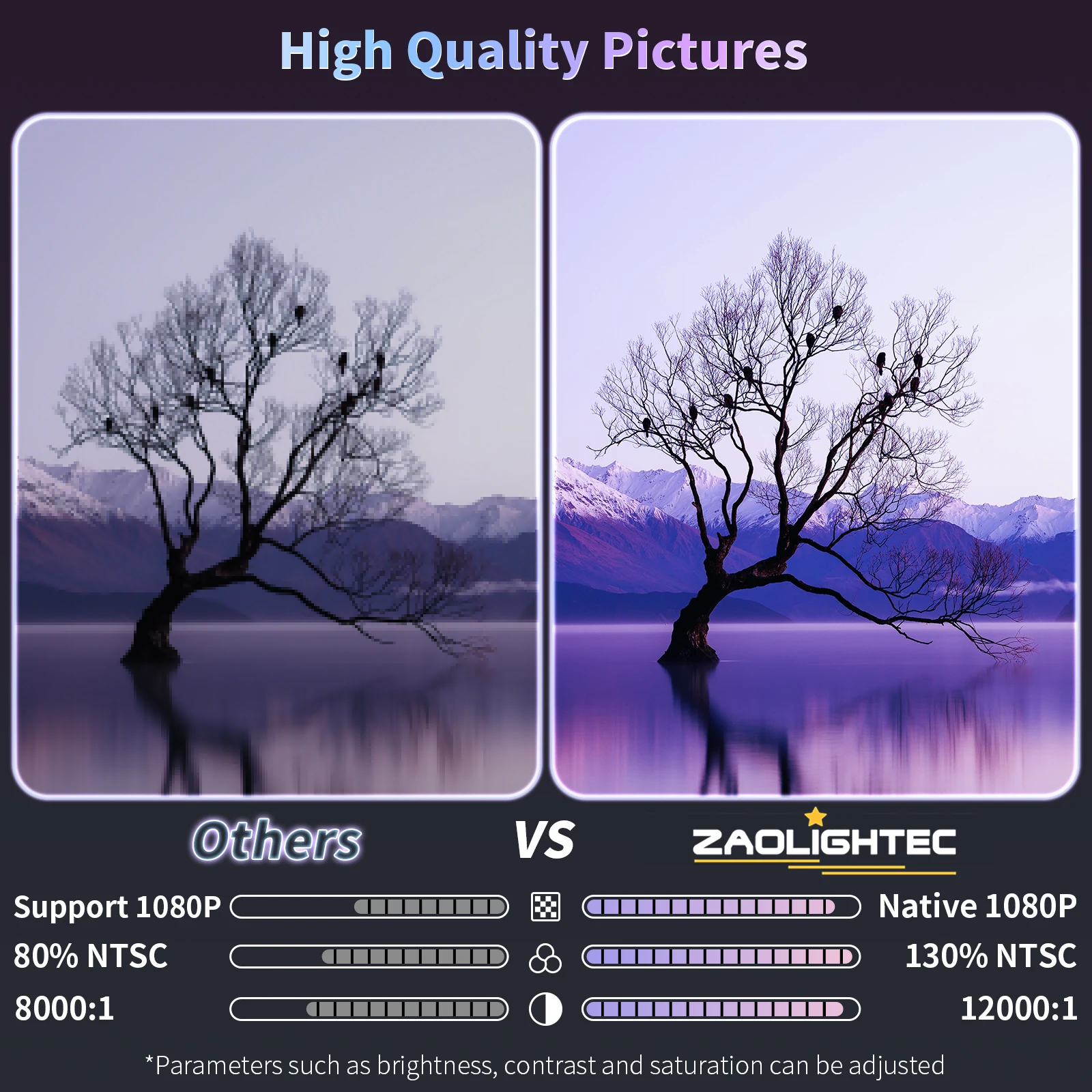 • 🎵【Собственное разрешение 1080P, высокая цветовая гамма, мощный динамик и Bluetooth. Разрешение составляет 1920*1080P, что на 400% более детализированное, чем Исходное разрешение 720P. Сверхвысокая цветовая гамма 130%, коэффициент контрастности (12000:1), принесите кинотеатр HIMAX домой. Функция Bluetooth может быть подключена к аудиоустройству с функцией Bluetooth (динамики, наушники) и не может быть подключена к смартфону.