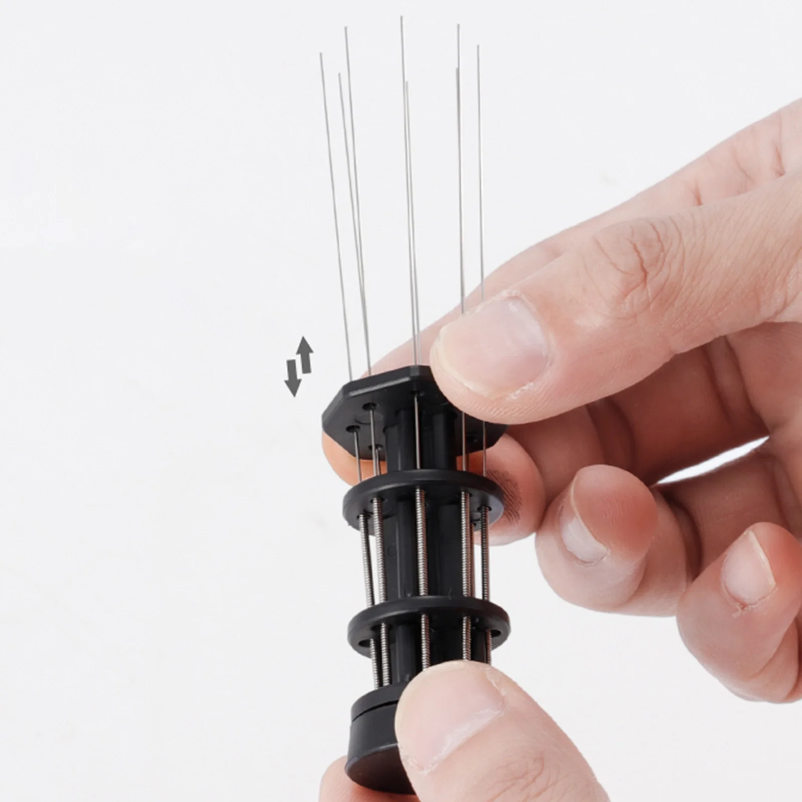 Регулируемый: инструмент для перемешивания кофе изготовлен из АБС-пластика для удобного захвата, нержавеющая сталь 304, не легко ржавеет. 8 дизайн, нажмите и потяните распорку вверх и вниз, чтобы отрегулировать размер отверстия иглы.