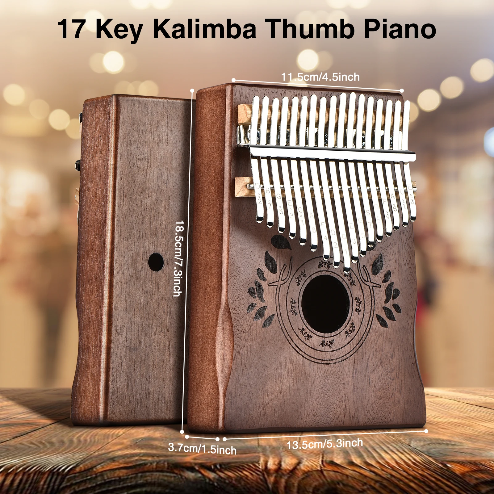 Этот калимба изготовлен из твердой древесины красного дерева и изготовлен вручную профессиональными работниками. Он очень прочный и долговечный.