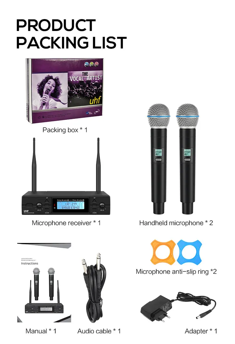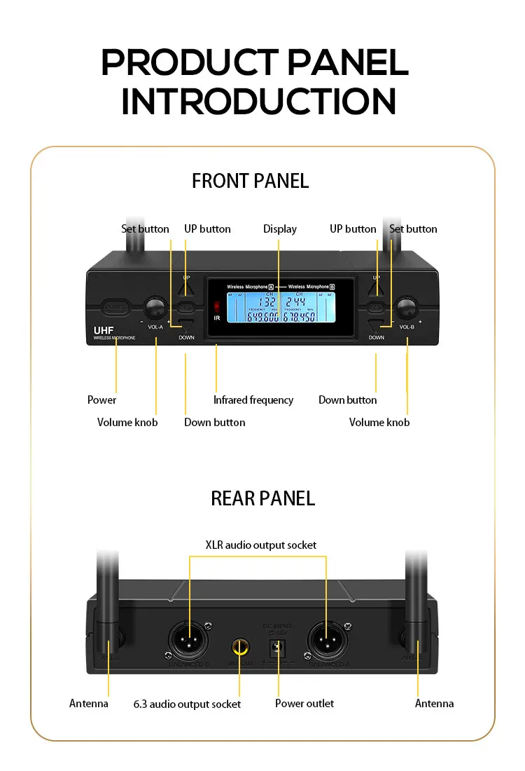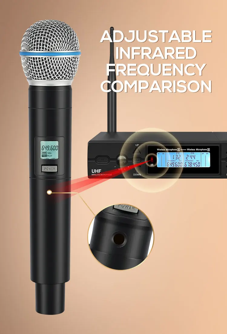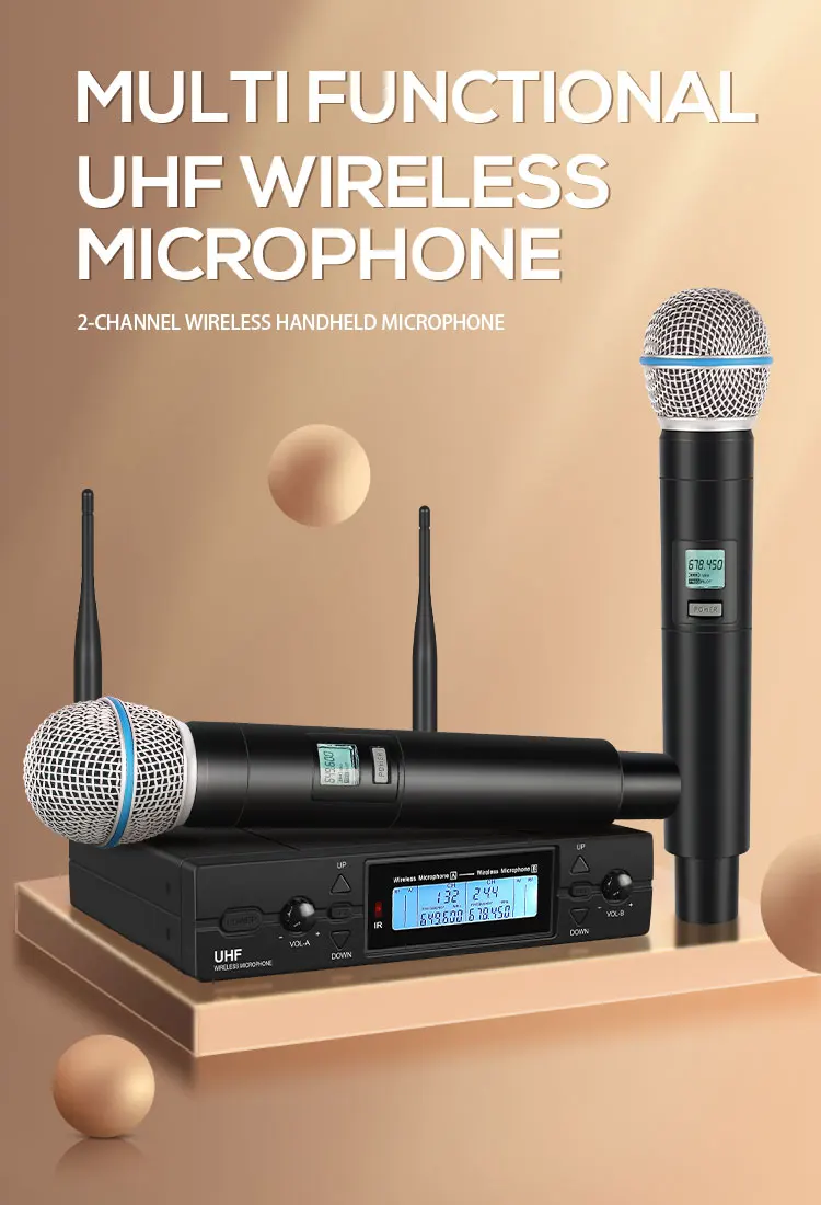 1. 2-канальная Беспроводная система UHF со 100 частотами на канал;