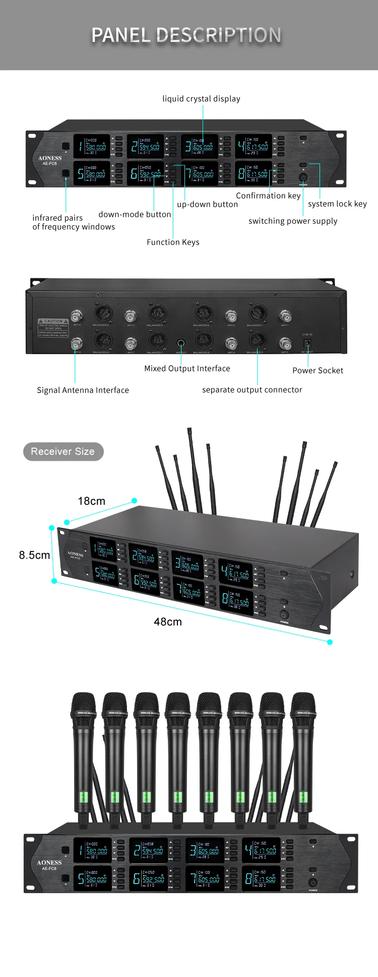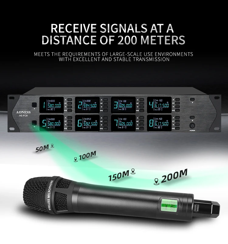 Профессиональный беспроводной микрофон UHF, 8-канальный ручной воротник с зажимом, микрофон для конференций, караоке, динамический микрофон для пения