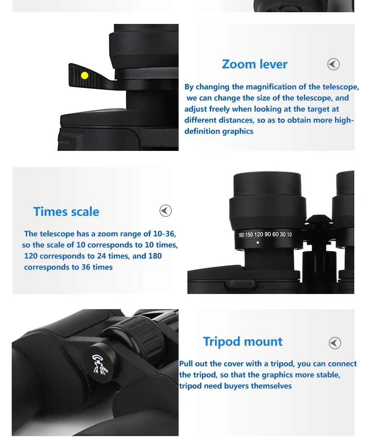 Профессиональный бинокль Borwolf 10-180X90, бинокль с ночным светильник ением и увеличением 10X-36X
