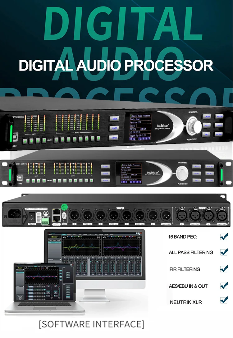 Профессиональный Сценический цифровой аудиопроцессор Paulkitson DSP0408RTS 96 кГц 32 бит DSP 16 Диапазонный эквалайзер с AES FIR спикер аудио оборудование