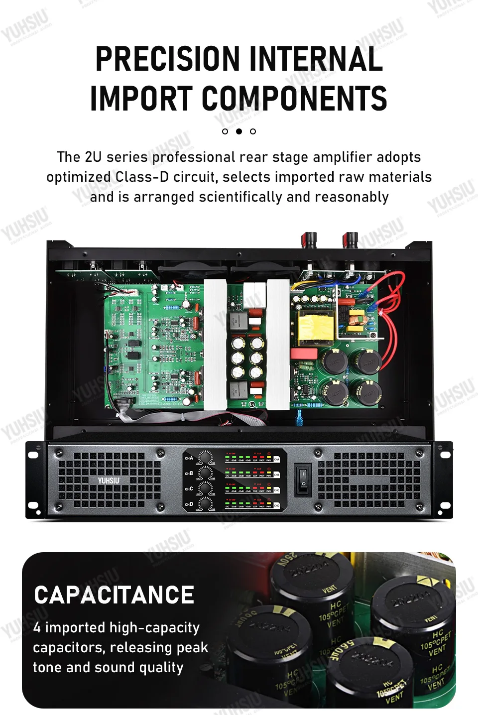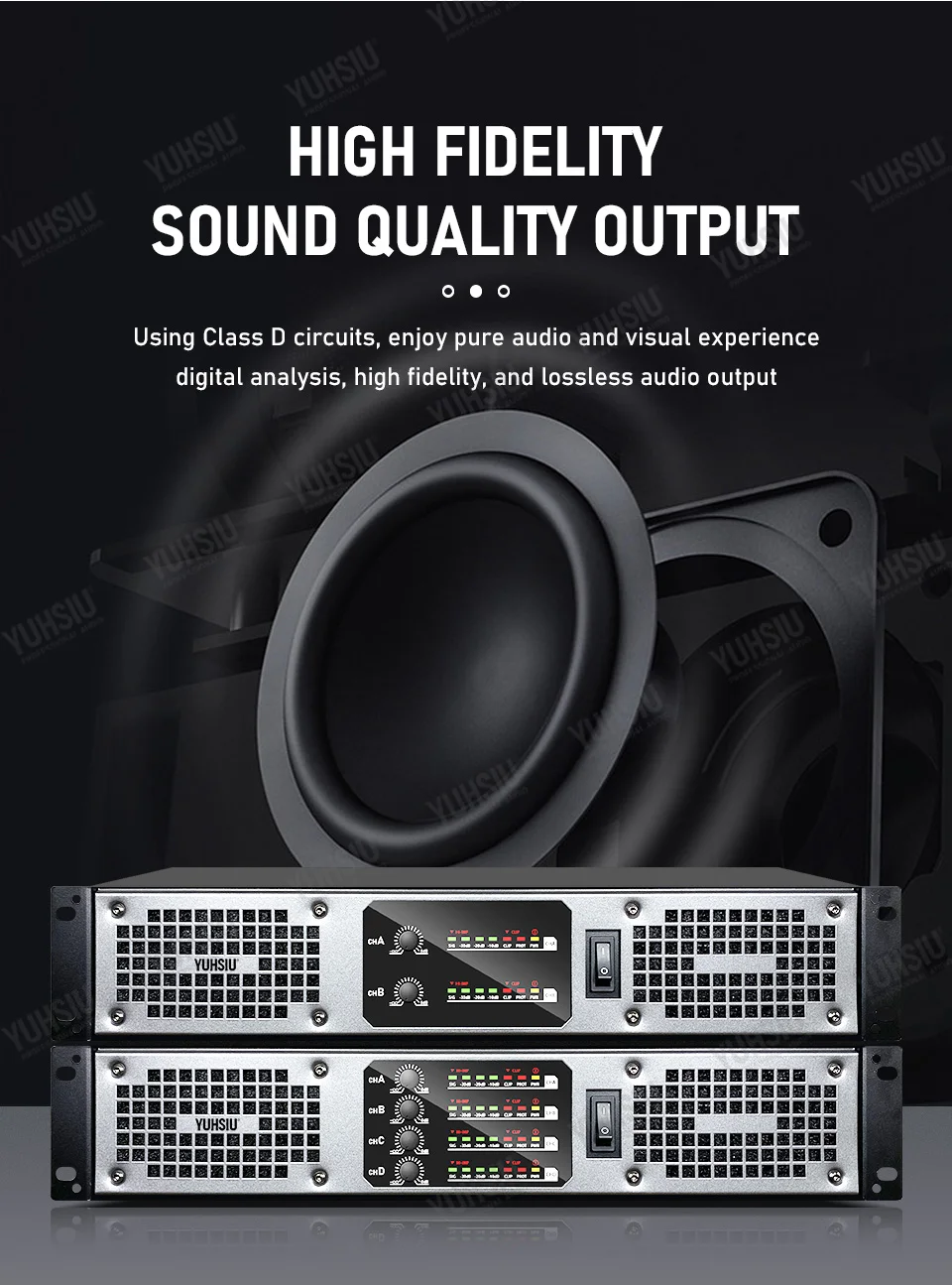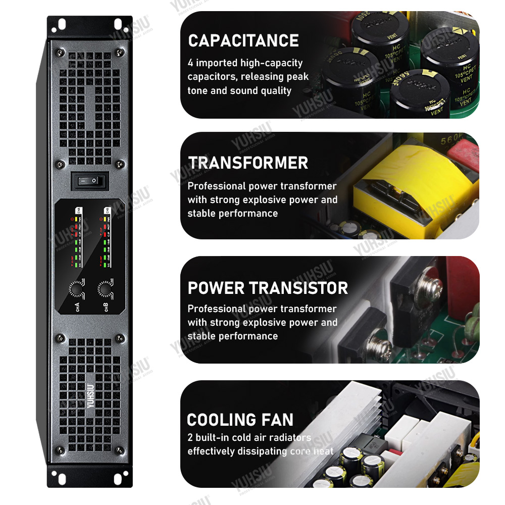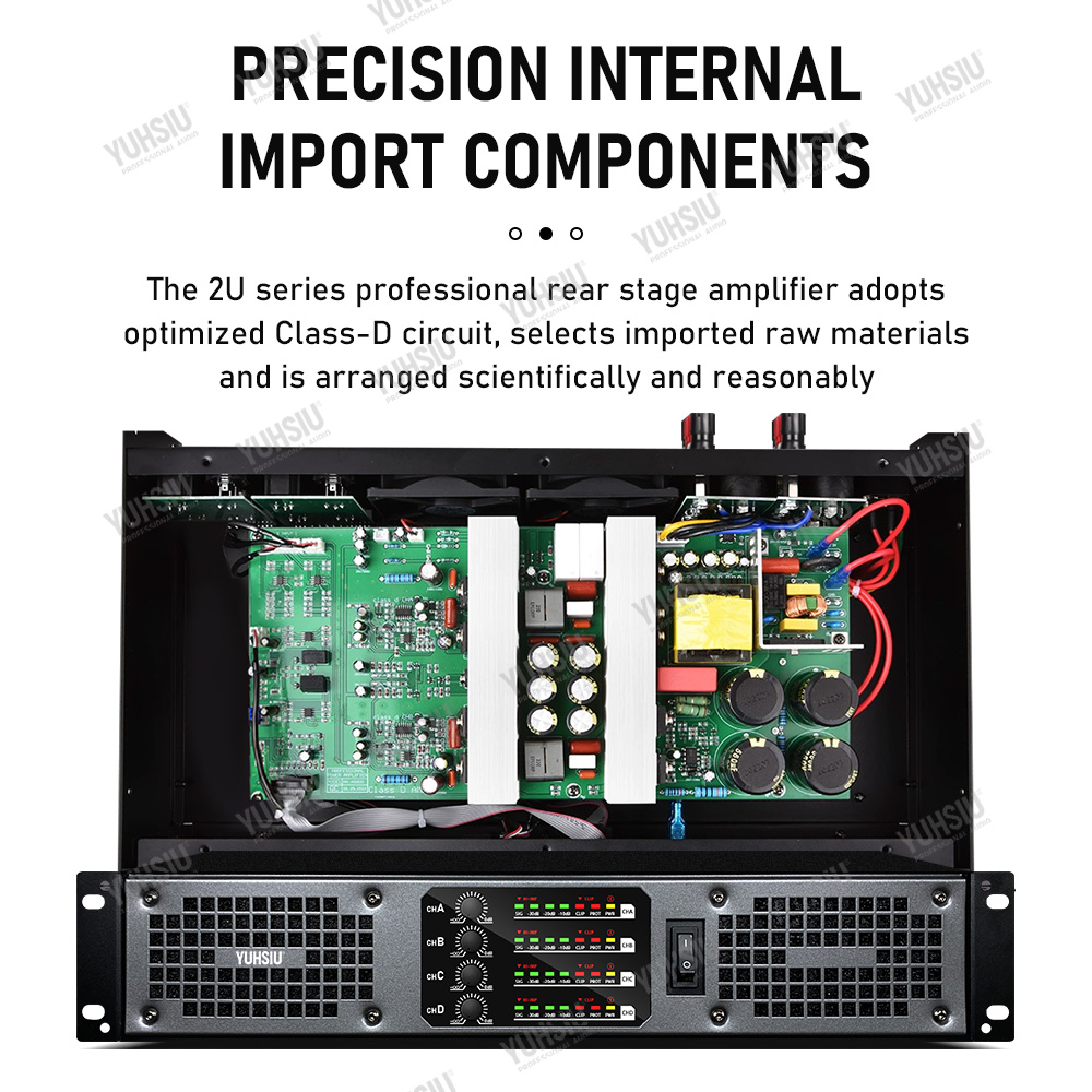 Профессиональный цифровой усилитель YUHSIU 2U класса D, Hi-Fi усилитель высокой мощности 850 Вт, 2/4 канала для KTV, дискотеки, сцены, караоке, аудиоколонки