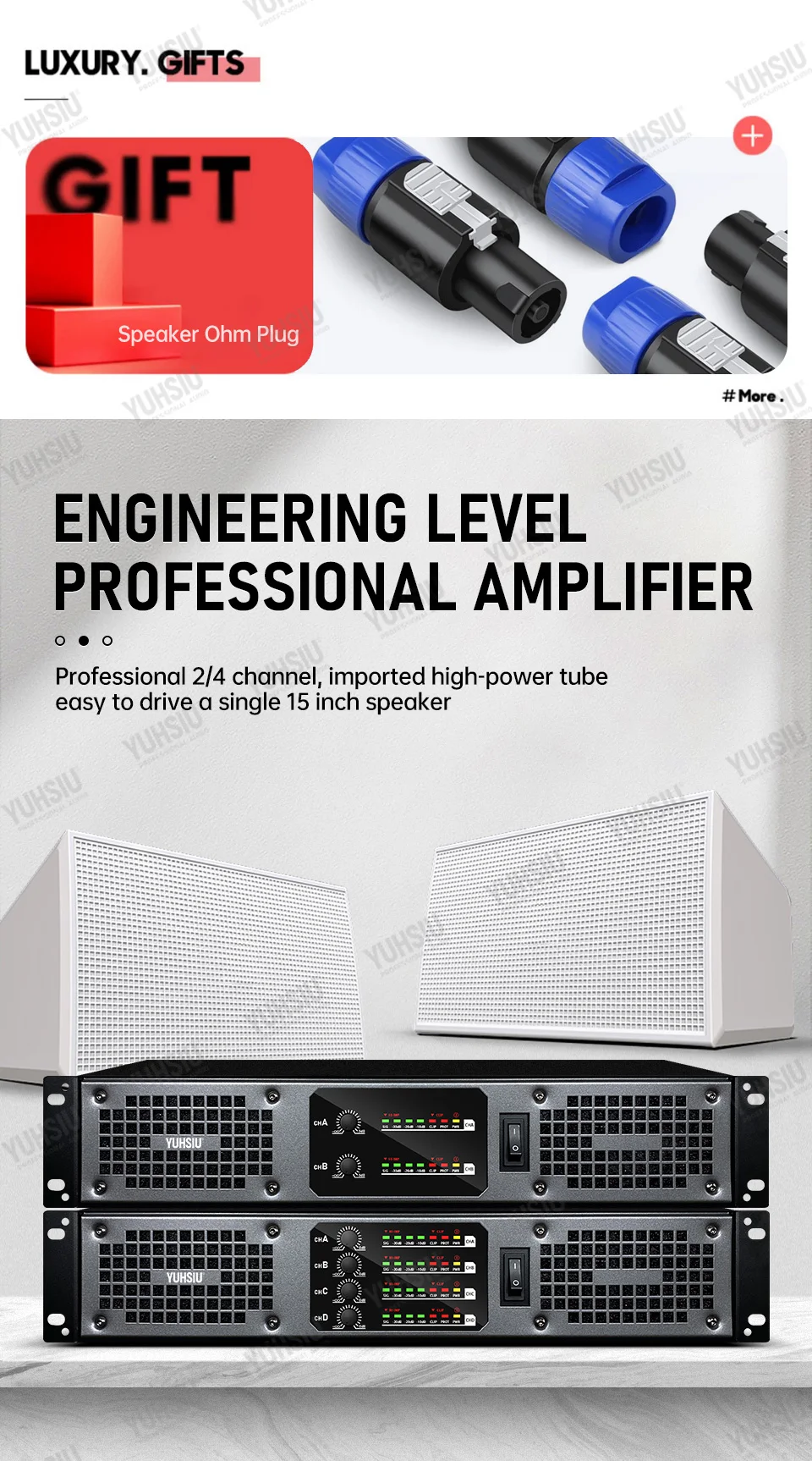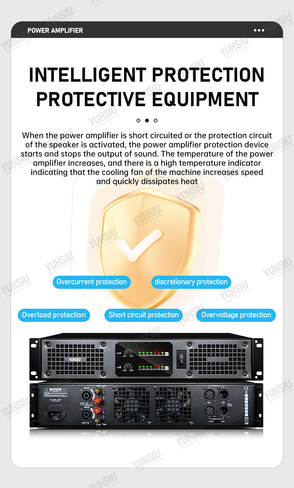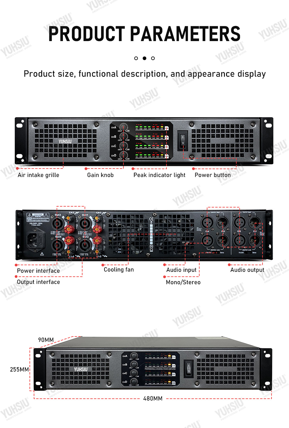 Профессиональный цифровой усилитель YUHSIU 2U класса D, Hi-Fi усилитель высокой мощности 850 Вт, 2/4 канала для KTV, дискотеки, сцены, караоке, аудиоколонки