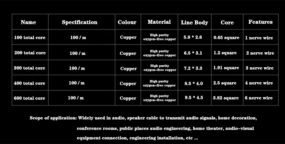 1. Широко используется в аудио, акустический кабель для передачи аудиосигналов, предметов интерьера, конференц-залов, общественных мест, аудиотехники, домашнего кинотеатра, подключения аудиовизуального оборудования, инженерной установки и т. Д.