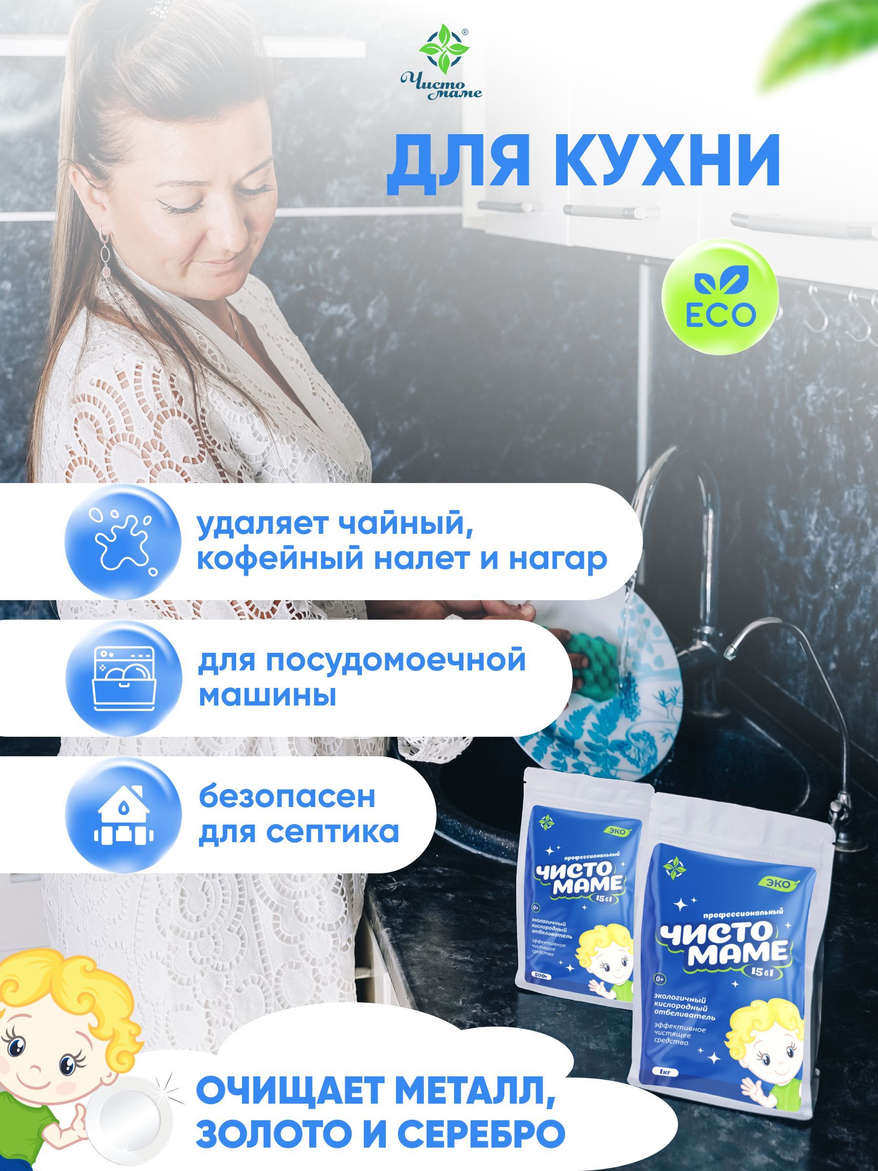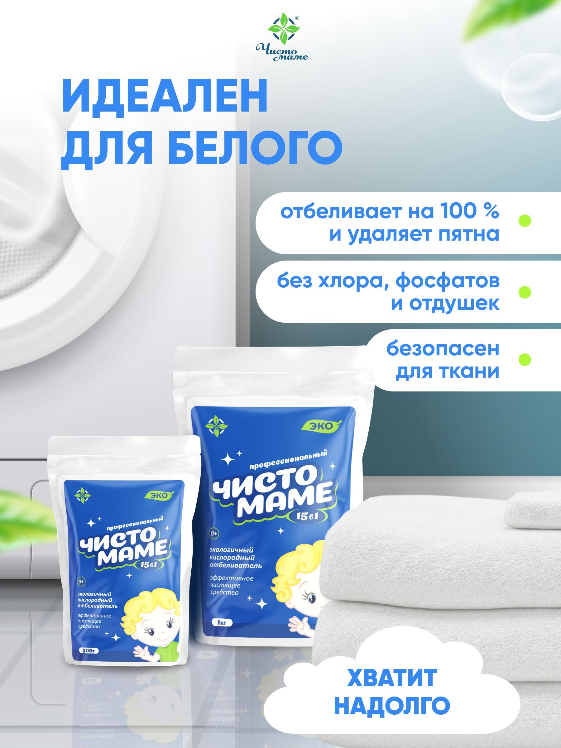 Профессиональный кислородный очиститель Чисто маме 1 кг, пятновыводитель для белого и цветного белья, отбеливатель экологичный универсальный, перкарбонат натрия