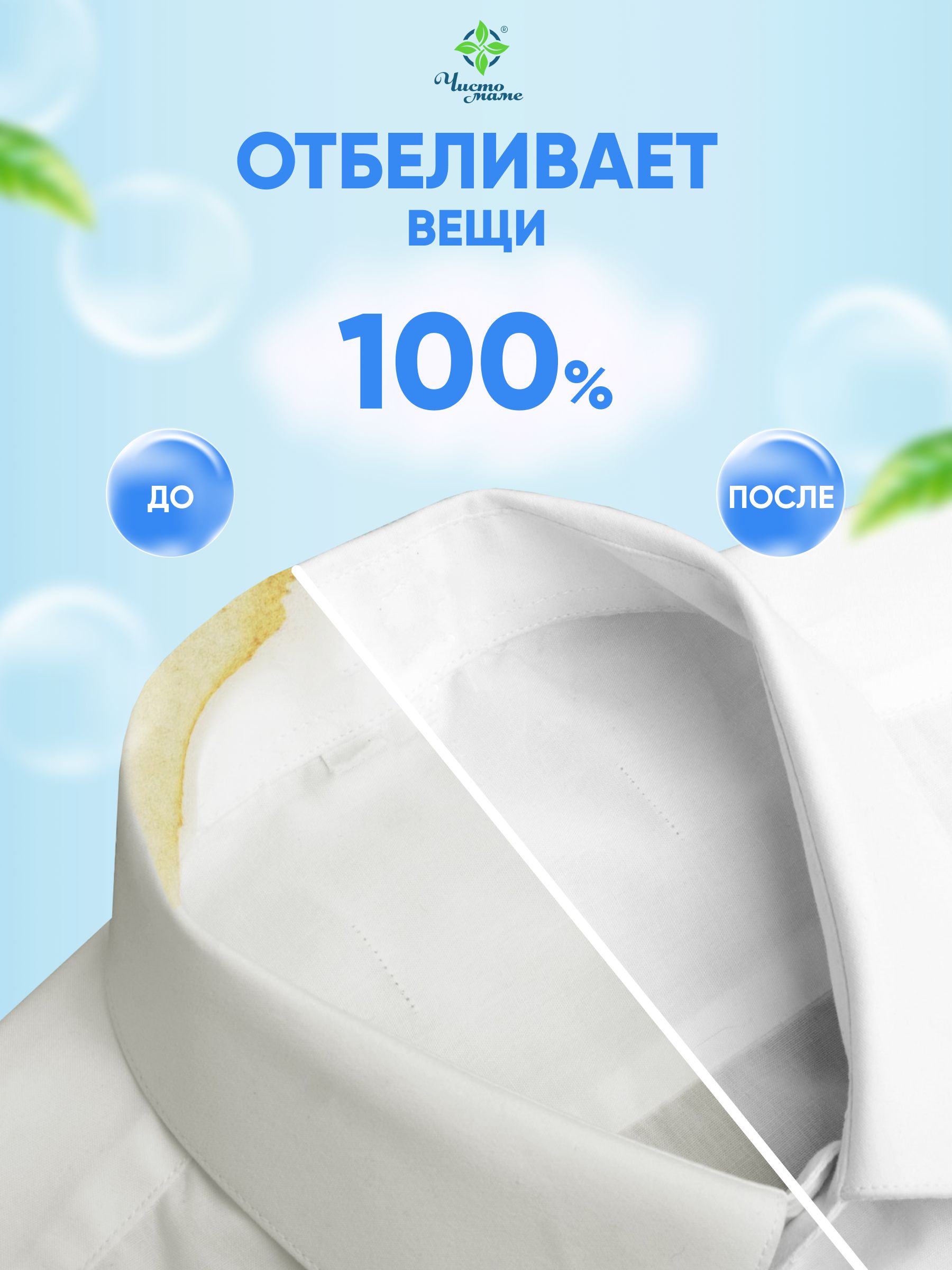 Профессиональный кислородный очиститель Чисто маме 500 г , пятновыводитель для белого и цветного белья, отбеливатель экологичный универсальный, перкарбонат натрия