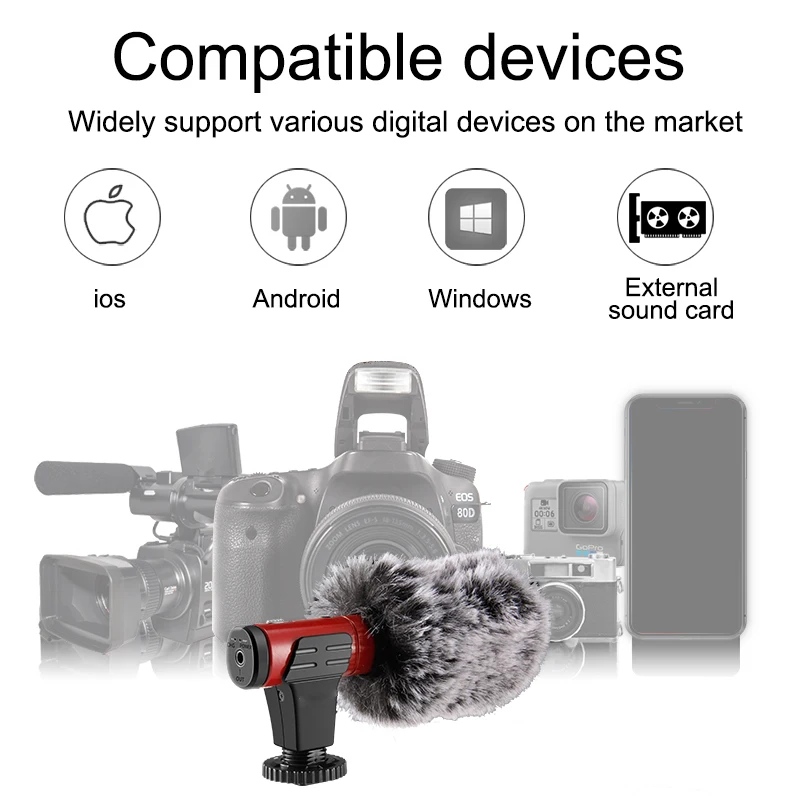 Микрофон, совместимый с SLR, микро-одиночным, камерой, мобильным телефоном, компьютером, аудио и т. Д.