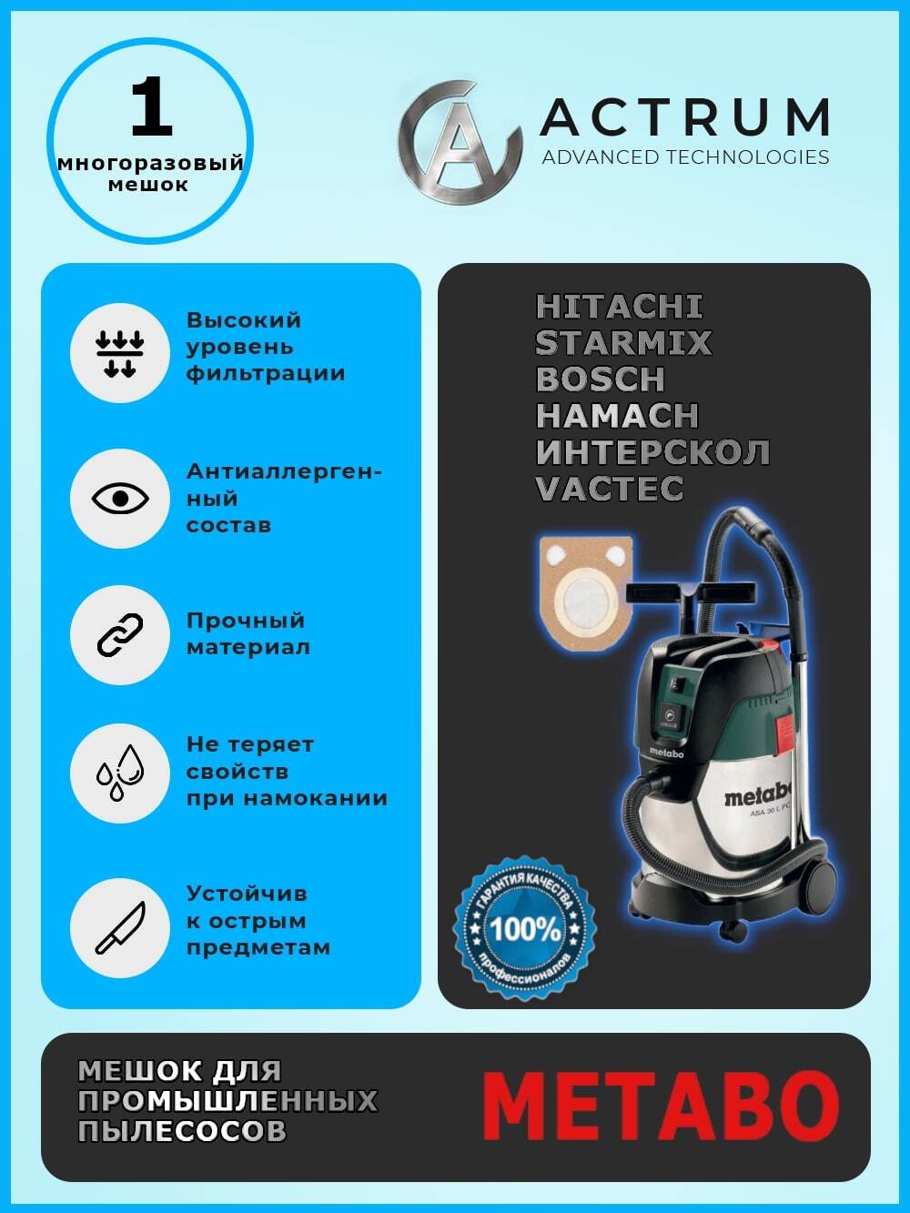 Профессиональный многоразовый мешок-пылесборник Actrum АК005M для промышленных пылесосов BOSCH, METABO, HITACHI, STARMIX + 1 сменный мешок в подарок!
