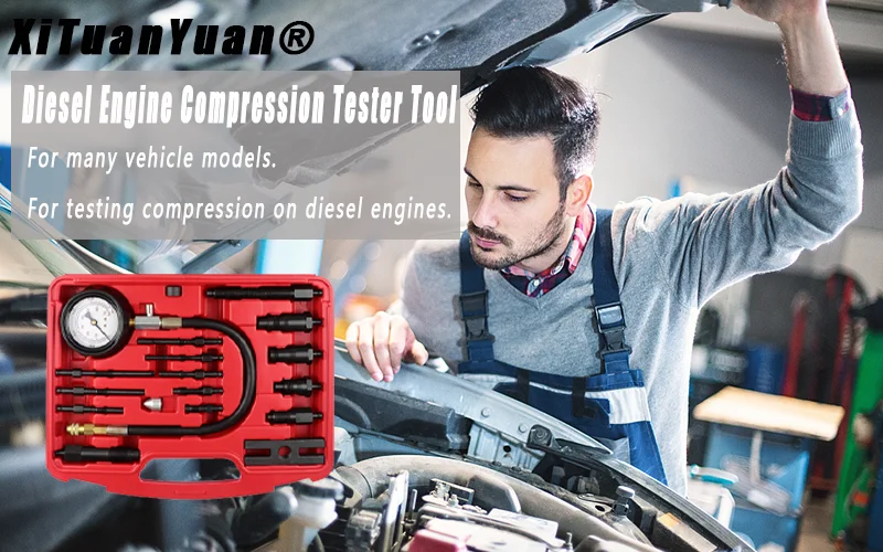 TU-15B Профессиональный набор инструментов для тестера сжатия дизельного двигателя, полный диапазон испытаний на обнаружение давления манометра цилиндров 17CS
