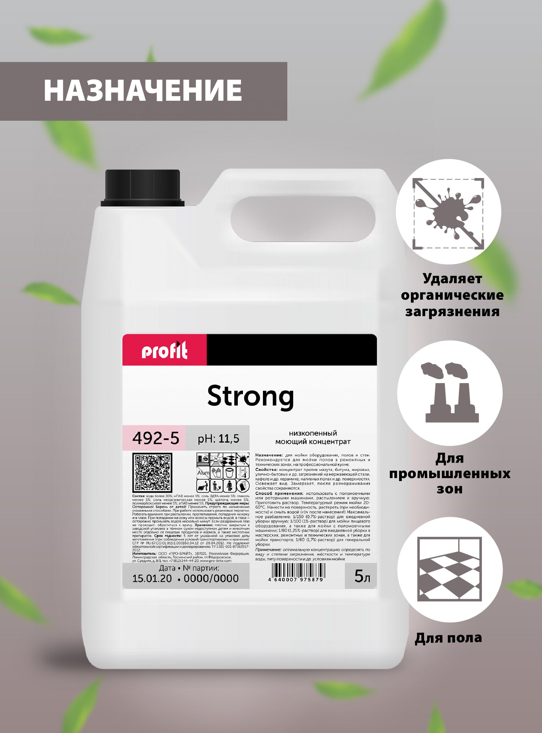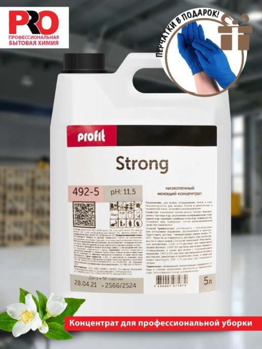 PROFIT STRONG Профессиональное концентрированно средство для мытья полов, уборки промышленных объектов и ремонтных зон, канистра 5л