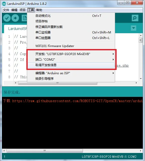 Программатор LarduinoISP для серии LGT MCU использует интерфейс SWD для LGT8F328P SSOP20/LQFP32/LQFP48 через программное обеспечение Arduino IDE