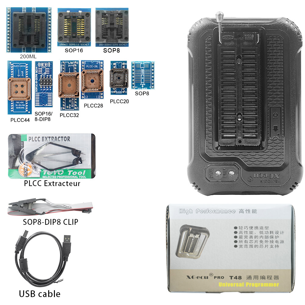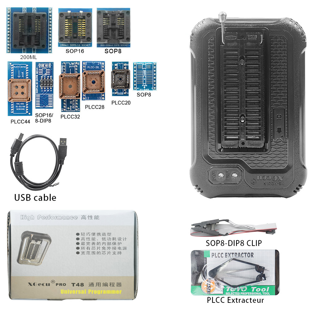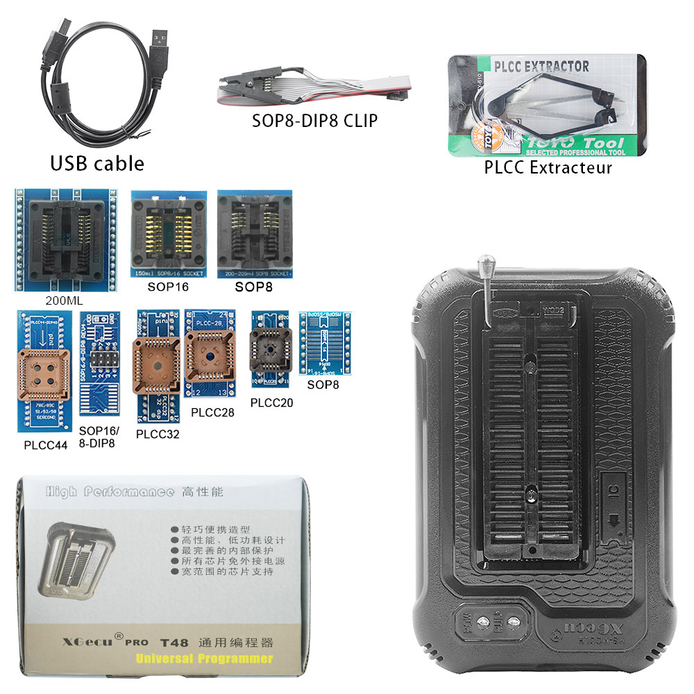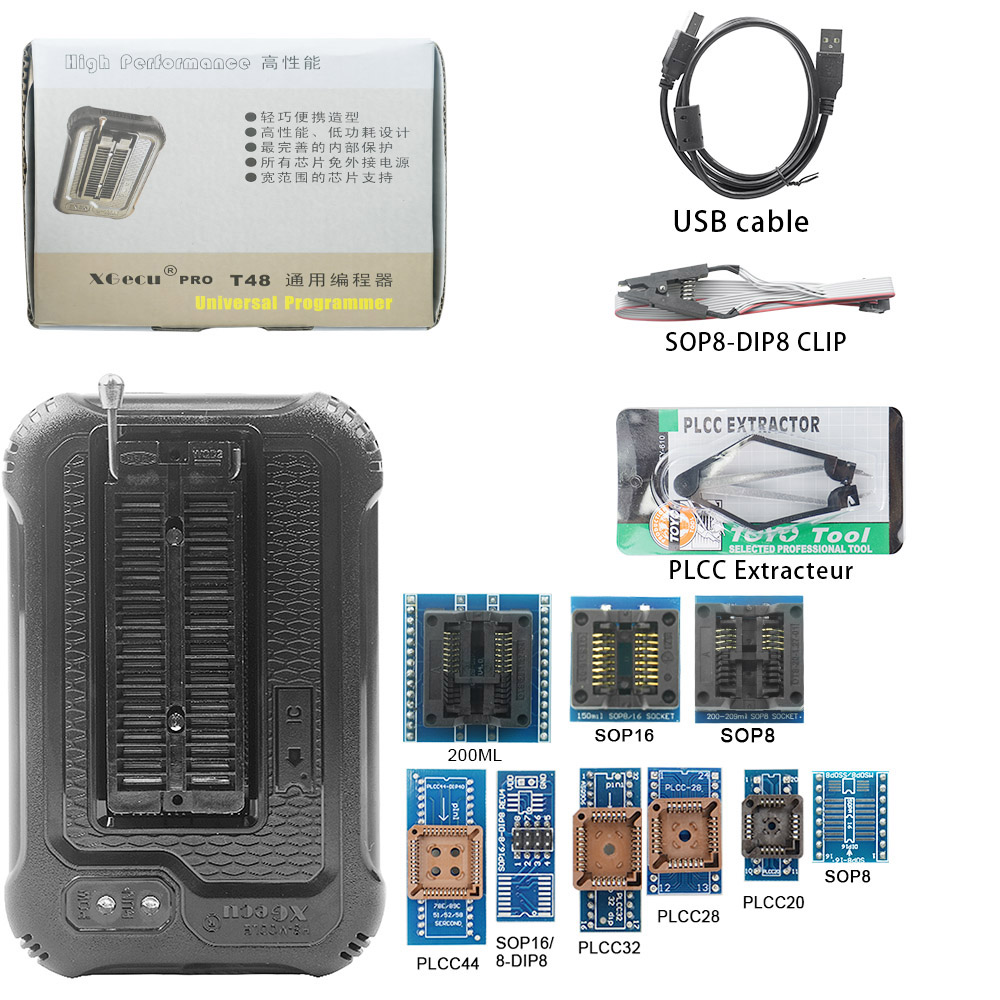 Программатор XGecu T48 [Φ] + 12 адаптеров, поддержка 31000 + микросхем для EPROM/MCU/SPI/Nor/NAND Flash/EMMC/ IC тестер, программа для ноутбука