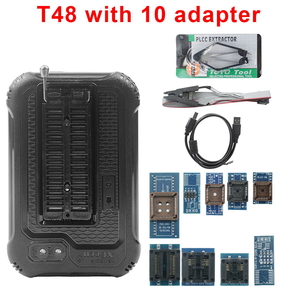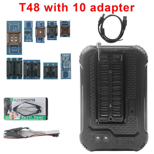 Программатор XGecu T48 с 10 адаптерами, поддержка 31000 + микросхем для ноутбуков SPI/Nor/NAND Flash/EMMC BGA/TSOP/SOP/PLCC