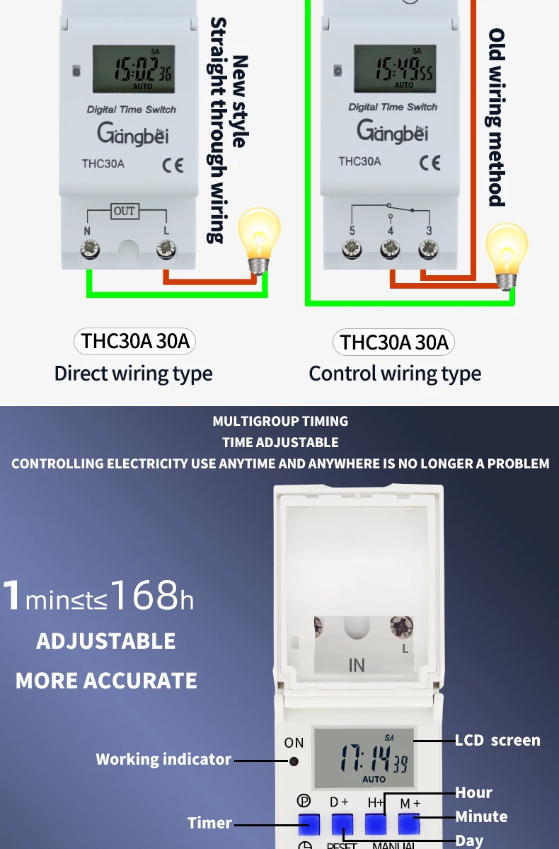 THC15A THC30A Еженедельно 7 дней Программируемый цифровой переключатель времени Реле управления таймером AC 220 В 230 В 110 В 24 В 12 В Крепление на DIN-рейку