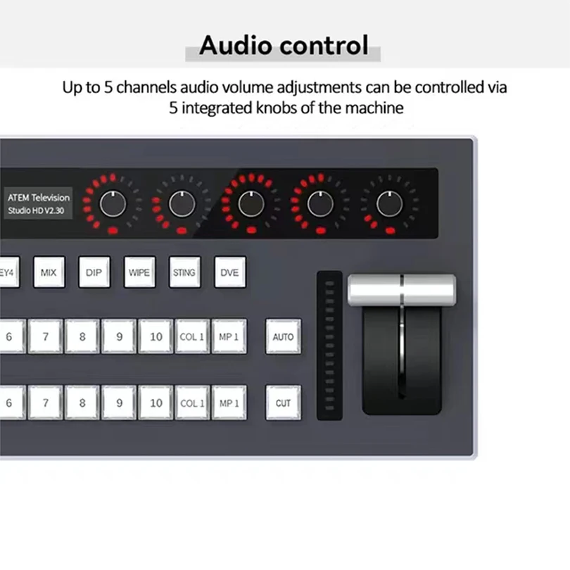 BMD атем и программное обеспечение vMixПанель видеопереключателя-это внешний направляющий коммутатор, разработанный специально для систем прямого вещания и полномедиа 4K виртуальных студийных систем. Он имеет элегантный дизайн и является переключателем, прямой трансляцией, записью и контролем PTZ, разработанным специально для гидов.